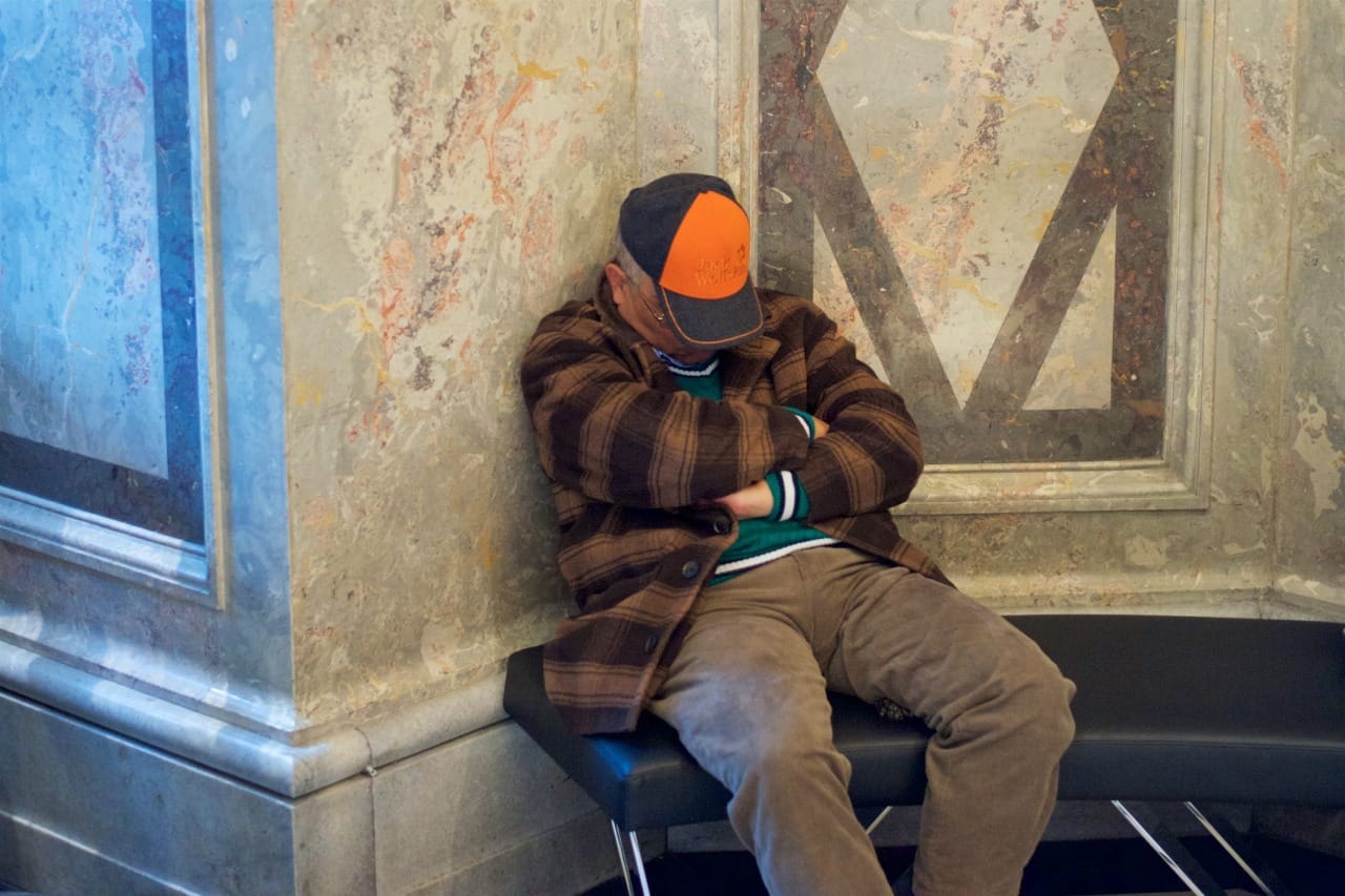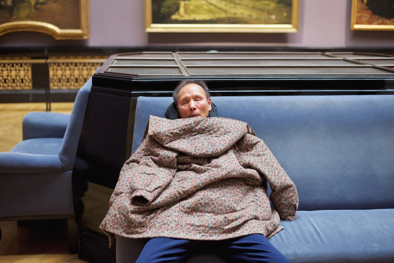Based in Vienna, Drashan has been combing European museums for these illicit interactions for nearly two years now. He first began with another project that focuses on an act that museums don’t explicitly prohibit but that some may consider indecorous: sleeping in museums. While People Touching Artworks might make you mad, its precedent is strangely soothing. You get a sense of the quiet in these spaces; the plushness of gallery benches; an air of safety not often felt in other public spaces.