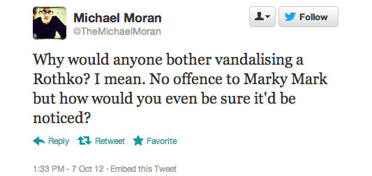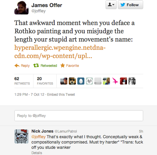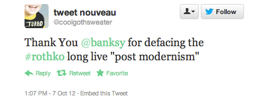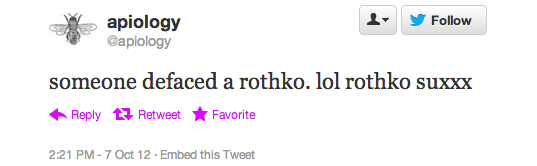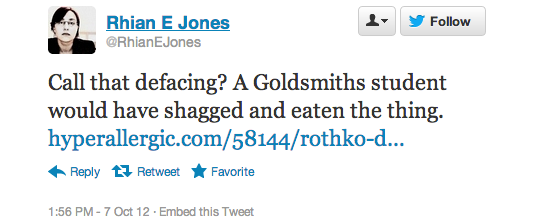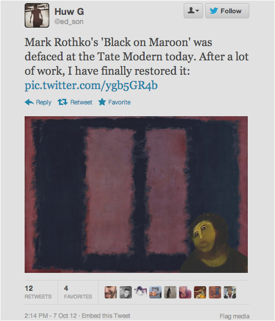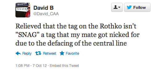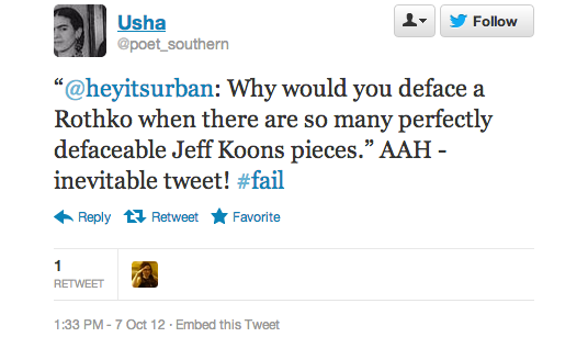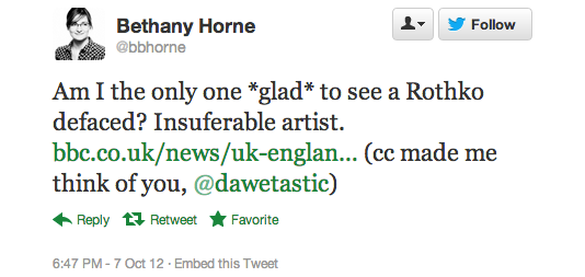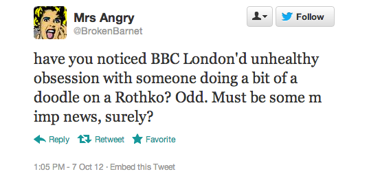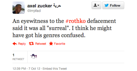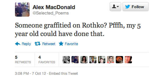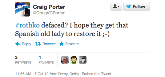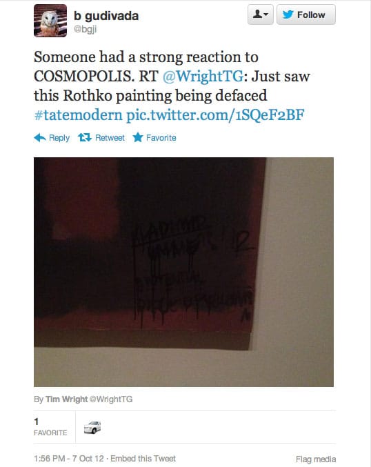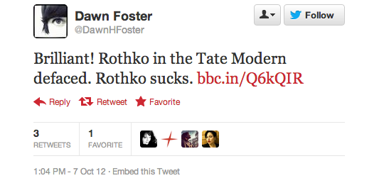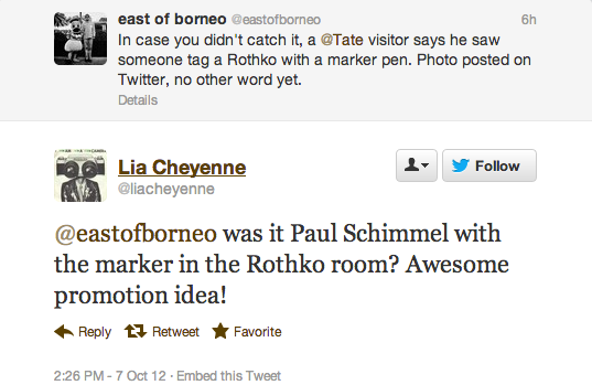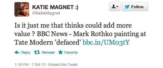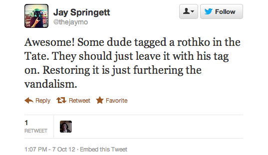The reaction in 140 characters or less after today’s Rothko incident at the Tate Modern has been overwhelming. At one point Rothko was a trending topic on the social media service, according to one user, but more than that these news events inevitably bring out the best and worst in people.