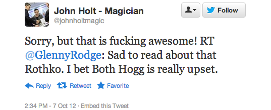 This post is about the other tweets, meaning the ones that expressed some type of enjoyment at the news, or maybe they just poked fun at the whole thing. Reading them is akin to being rubbernecking on the information highway. You don’t know why you have to look but you just do. We’ve saved you the time and compiled some of the most interesting from the first six hours after the incident below. Enjoy … or, er, whatever you’re supposed to do with them.