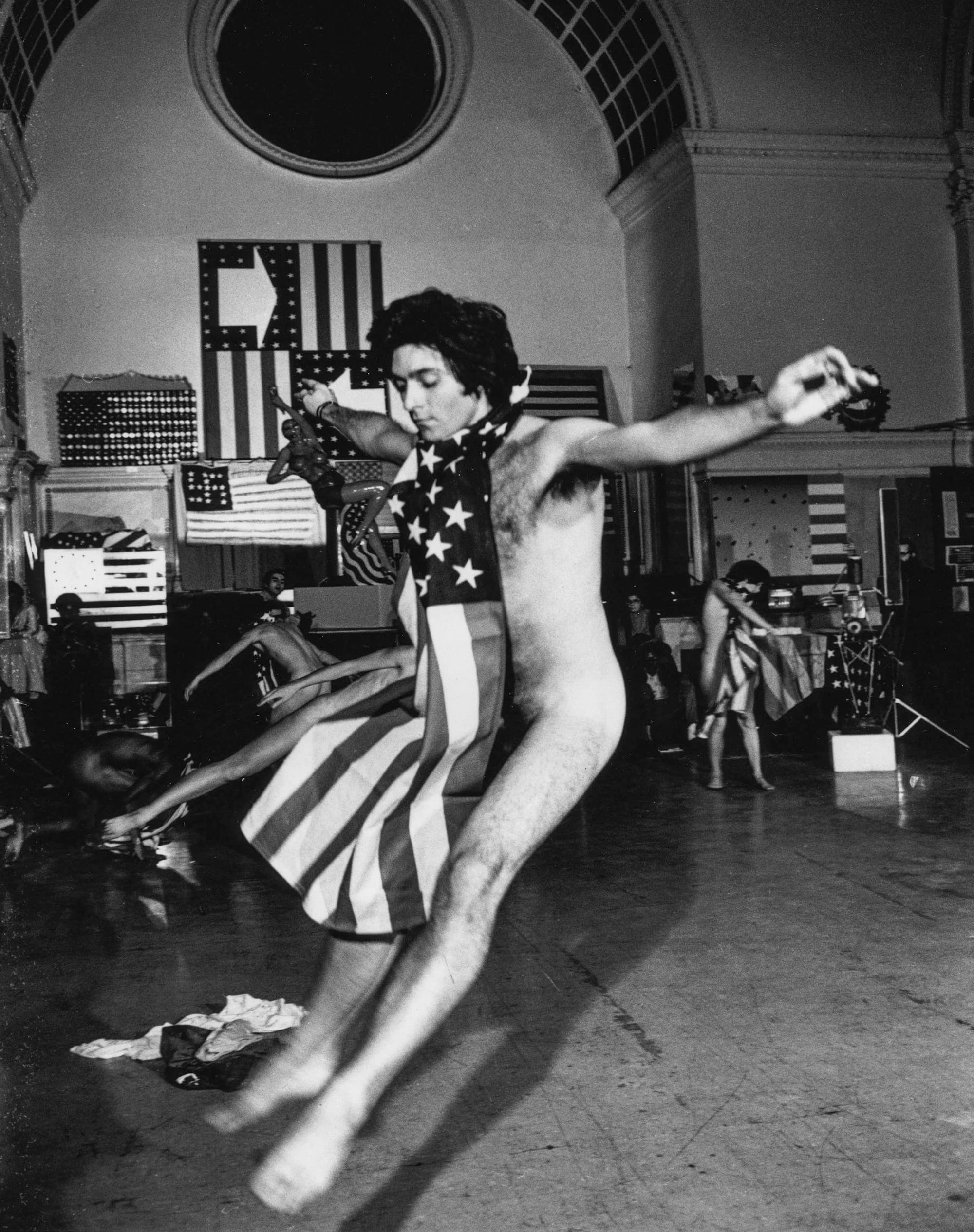 The archive is a point of connection for many of the participating artists. Experimental choreographer and filmmaker Yvonne Rainer, for example, will restage her iconic performance Trio A with Flags with dancers Brittany Bailey and Nick Sciscione. They will perform against a backdrop of the original documentary footage, filmed almost exactly fifty years from the day of this year’s telethon, on November 9th, 1970. The work features Rainer and five other performers at Judson Church, nude except for American flags tied around their necks and draping over their bodies. Originally presented during the Vietnam War, the piece’s interrogation of nationalist imagery has ongoing resonances.