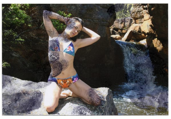 One of the works that piqued my interest was Laurel Nakadate’s Lucky Tiger series, in which the artist dresses in a bikini and does cheesecake poses for the camera. She then takes the pictures, places an announcement on Craigslist for middle-aged men to look at her photos with inked fingers, and then hands over the photos to the anonymous accomplices who leave their fingerprints on the photographs. The resulting objects go beyond the performance itself and become ambiguous records of experience and representation.