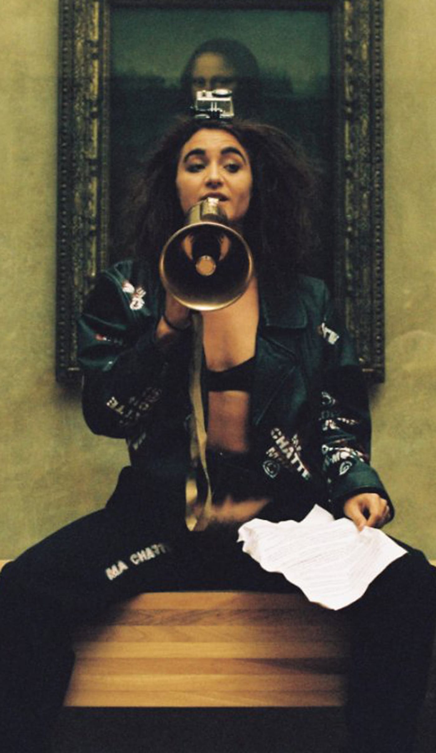 During the performance, De Robertis shouted through a megaphone, “Mona Lisa, my pussy, my copyright,” while revealing her vagina in front of the “Mona Lisa.”(In April, she had similarly exposed herself in front of the same painting, while a violinist played music, and was forced out of the museum.) For “Ma chatte, mon copyright,” she was held in jail for two days before a judge ordered her to stand trial this past Wednesday.