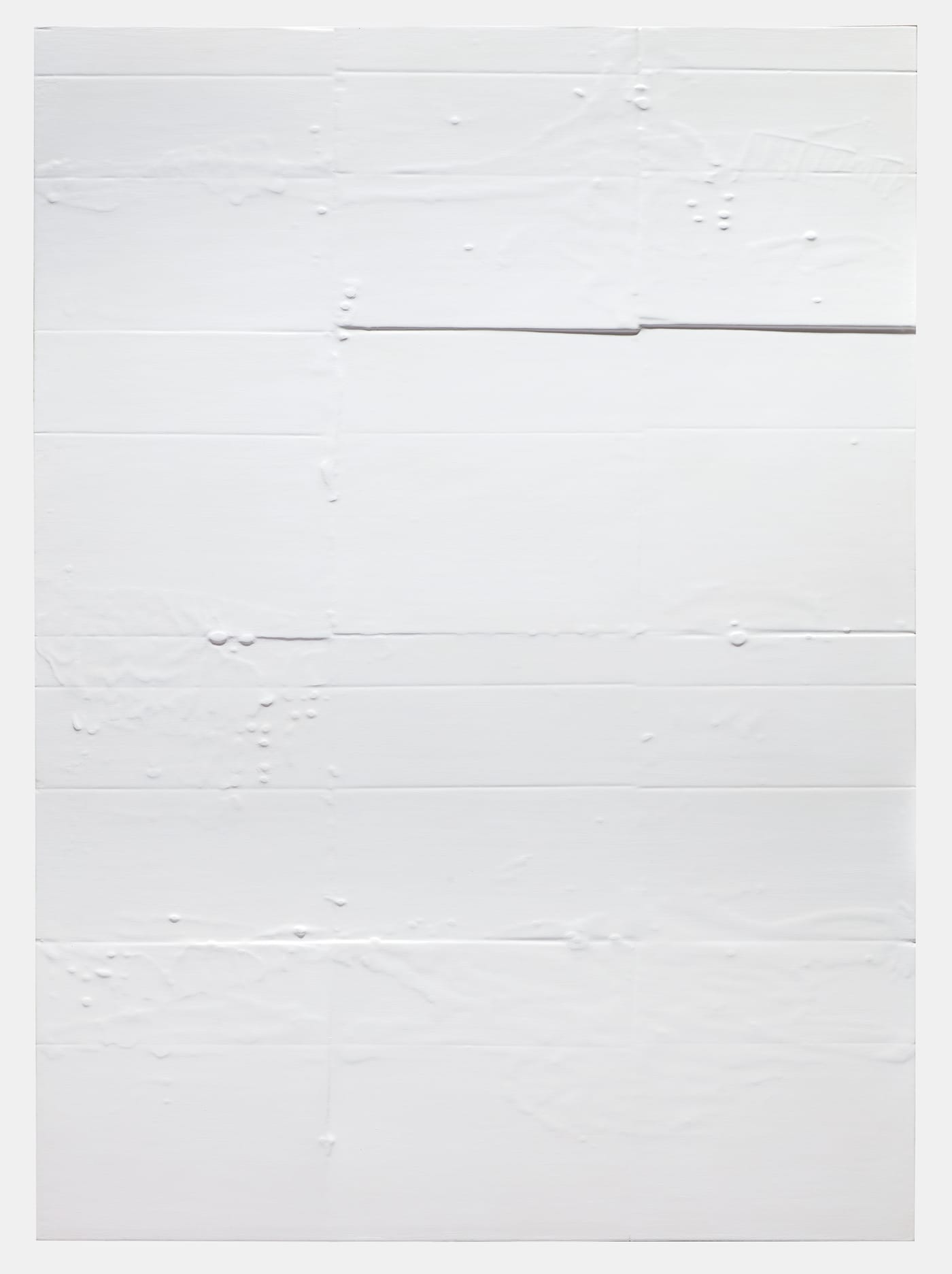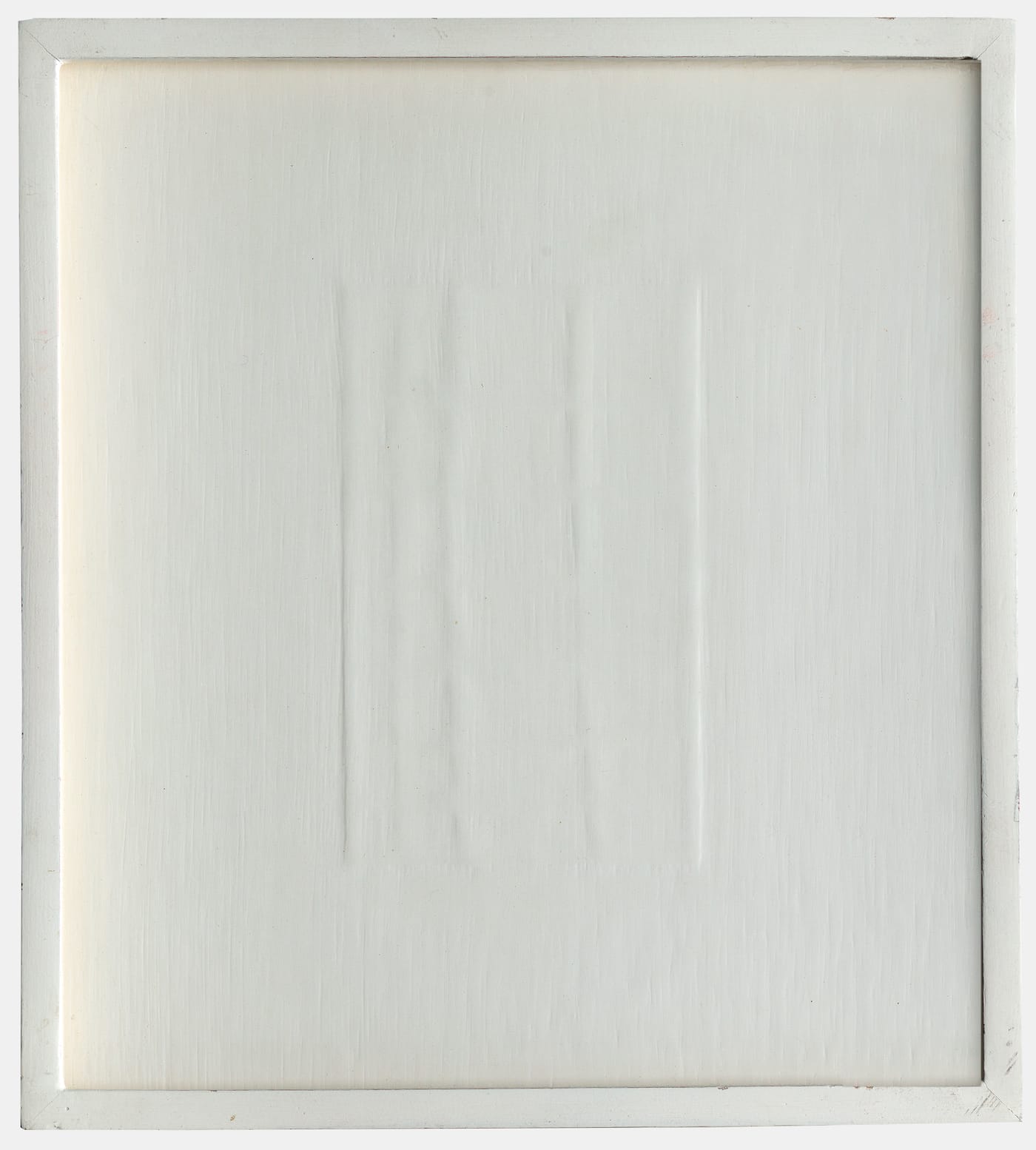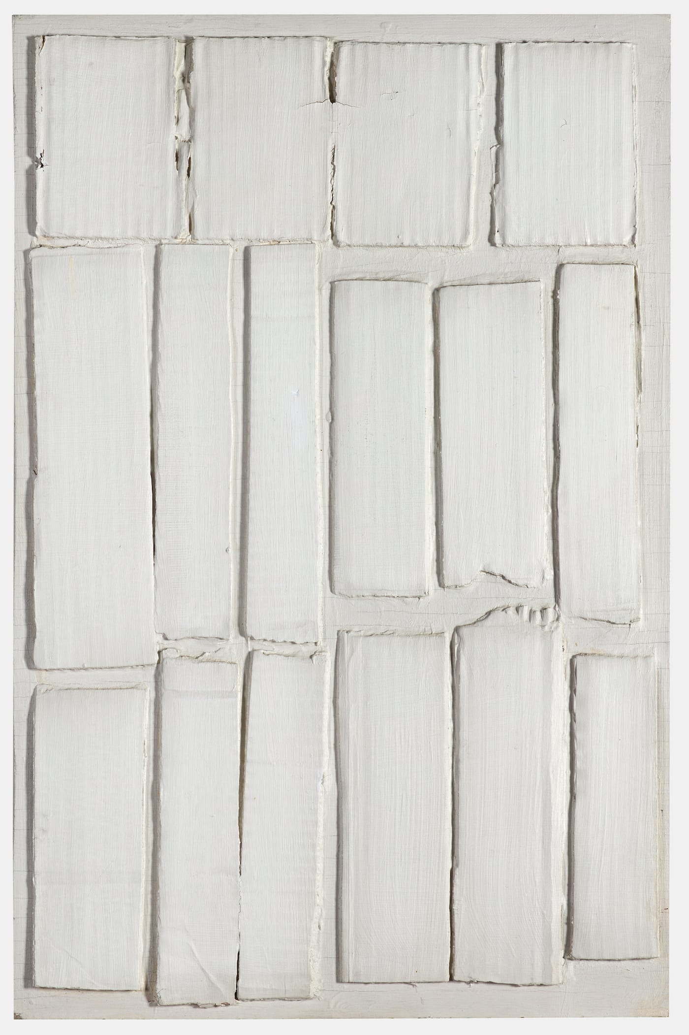 Mikus, like Ann Truitt, worked throughout the 1960s within a highly circumscribed set of variables. The other name I would cite is the Dutch artist Jan Schoonhaven, who made white-on-white wall reliefs out of wood, paper, and cardboard. One difference is that orderly grids do not govern Mikus’s reliefs: they are uneven and quirky. She uses classic repetition — as did Judd and Carl Andre — to make paint drenched reliefs that deal with light as well as talks to painting. Her territory is a monochrome relief and none of her more celebrated contemporaries went there.
