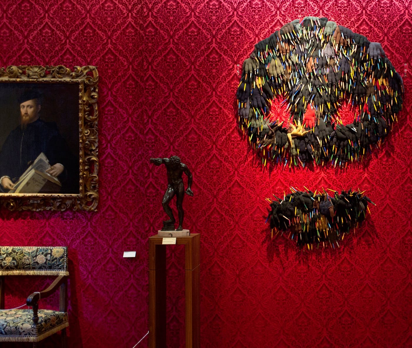 Other parts of the show are distributed throughout the Foundation’s Hôtel d’Assezat building, a 16th century Renaissance palace jewel itself, that permanently houses a cherry Roger van der Weyden studio painting “Virgin and Child” (15th century) and works by François Clouet, Tiepolo, François Boucher, Elisabeth Vigée-Le Brun, Pieter Brueghel the Younger, Titian, Henri Fantin-Latour, Odilon Redon, Paul Gauguin, Paul Cézanne, Georges Rouault, Henri Matisse, and Pablo Picasso, among others. Mathilde de Weisweiller’s gnarly collection is moodily re-contextualized by these artists’ paintings, as well as the more recent skull scenes of Niki de Saint Phalle and two Brassaï photographs of scratched graffiti. There are also eccentric paintings by Georges Braque and Miquel Barceló, a great skull drawing by Jean-Michel Basquiat, one of Robert Mapplethorpe’s haughty last self-portrait photographs, and an Annette Messager pencils-gloves-skull, that bollixes up the high seriousness of the show in customary fashion.
