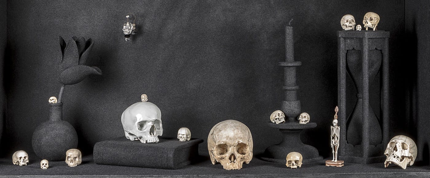 TOULOUSE, France — The tipsy rapture experienced when in close contact with fine timeworn vanitas seems to stem from the discord felt between enjoyably empathizing with the ultimate barrenness that awaits us, and apprehending that barrenness. Baroness Henri de Rothschild (née Mathilde de Weisweiller), the wife of essayist, playwright, and creator of the Pigalle theatre in Montmartre, Baron Henri de Rothschild, must have felt that perverse aesthetic pleasure when amassing her collection of vanités, which was bequeathed on her death in 1926 to the Musée des Arts Decoratif in Paris. We know not why she was obsessed with these images (she was otherwise conventional) but the baroness’s challenging aesthetic passion for such hoary wares is for the first time fully on view in Toulouse at Fondation Bemberg’s exhibition Même pas peur: Vanités d’hier et d’aujourd’hui (Not Even Afraid: Vanitas of Yesterday and Today) in a sleek but sumptuous installation designed by Hubert le Gall. Abject Lovecraftian emotions are released by contemplating the small, realistic human bones assembled here in a kind of deadly mad ecstasy which secretly and sacredly already animates us.