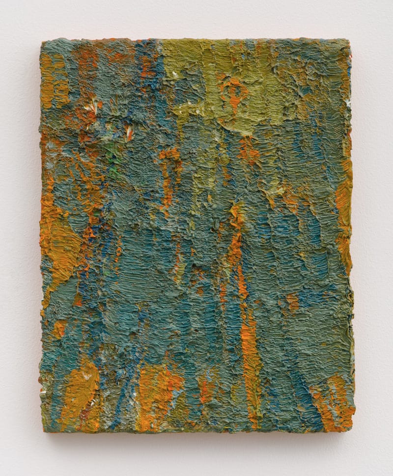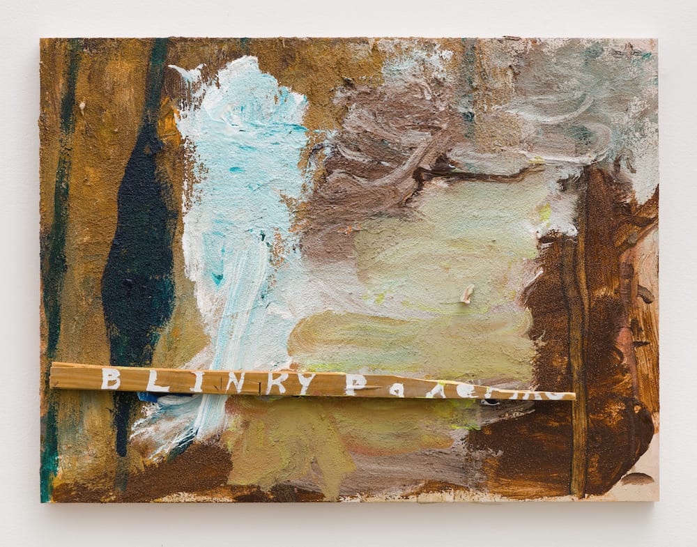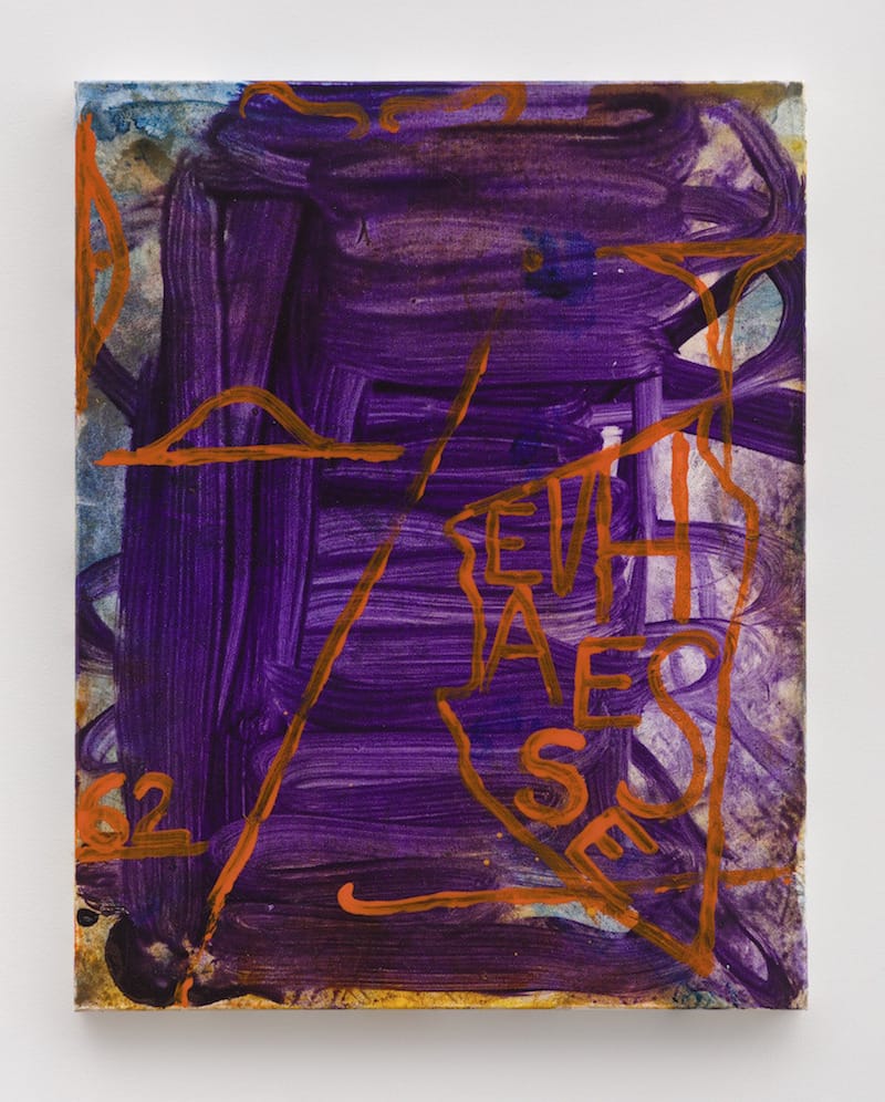 When Acheson writes “Eva Hesse” and the number “62” in orange over a largely deep purple painting of thinly applied brushstrokes, he is acknowledging that whatever else happened in this layered painting, Hesse was on his mind. Instead of trying to get rid of the many artists keeping him company in his studio, he welcomes as well as memorializes them. Acheson may not want to be endearing, but he cannot help but become appealing in these paintings. Their modest scale saves them from turning into overblown, self-serving statements, nor is there anything. stylish about them. When he writes “Blinky Palermo” in white paint on a scrap of wood and affixes it to the front of a moody abstract painting, the browns and the dark and pale greens obliquely evoke the German artist.