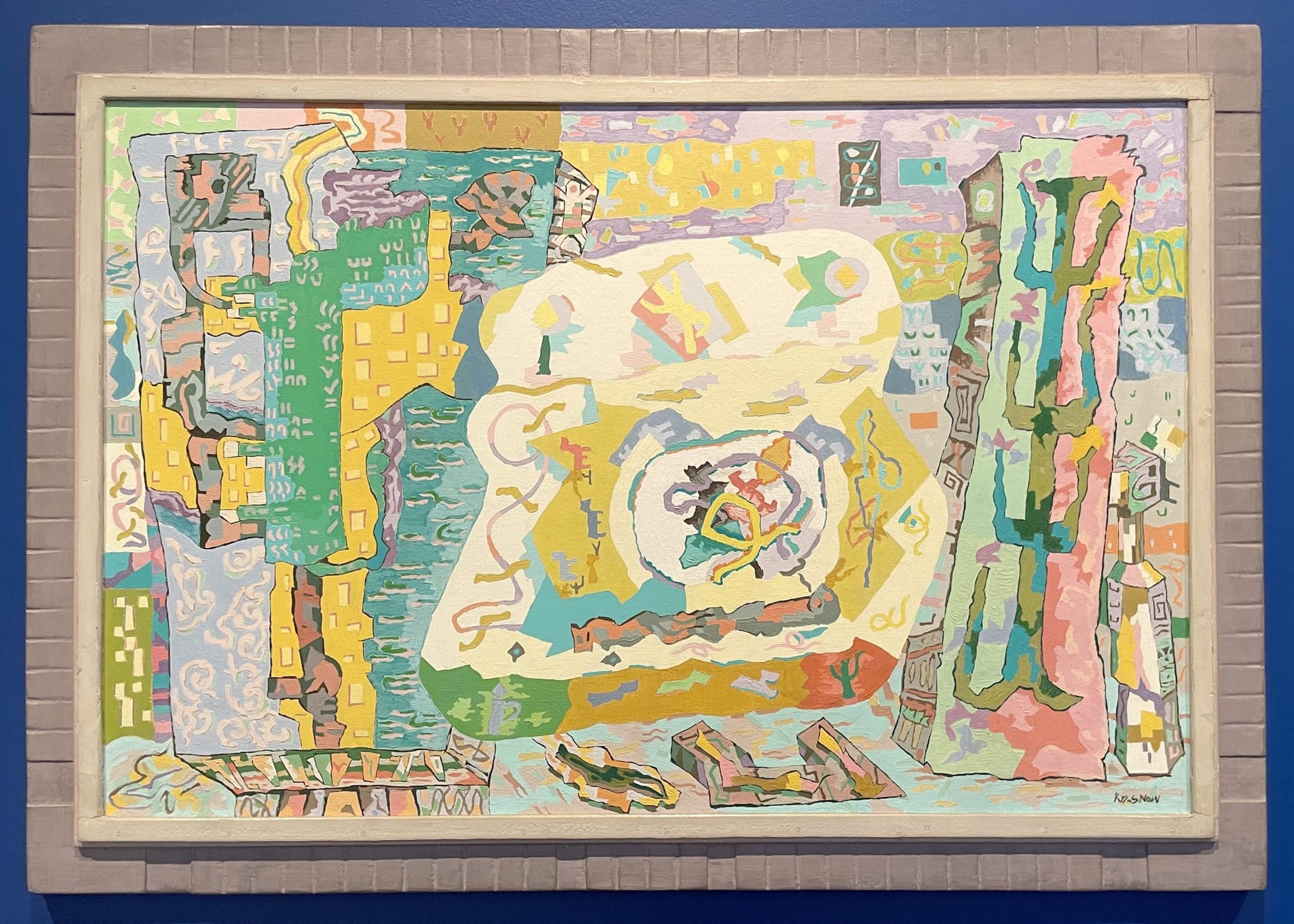 LOS ANGELES — As a teenager, Peter Krasnow fled the pogroms in Ukraine to study painting in America. His artwork responded to the times and his environment, from realistic depictions of his glum Jewish immigrant community to forlorn portraits in a post-impressionist style. But after Krasnow relocated to Los Angeles, his work transformed into bright, energetic hard-edge celebrations of life. This is the era celebrated in the exhibition, Peter Krasnow: Breathing Joy and Light at the Skirball Cultural Center.