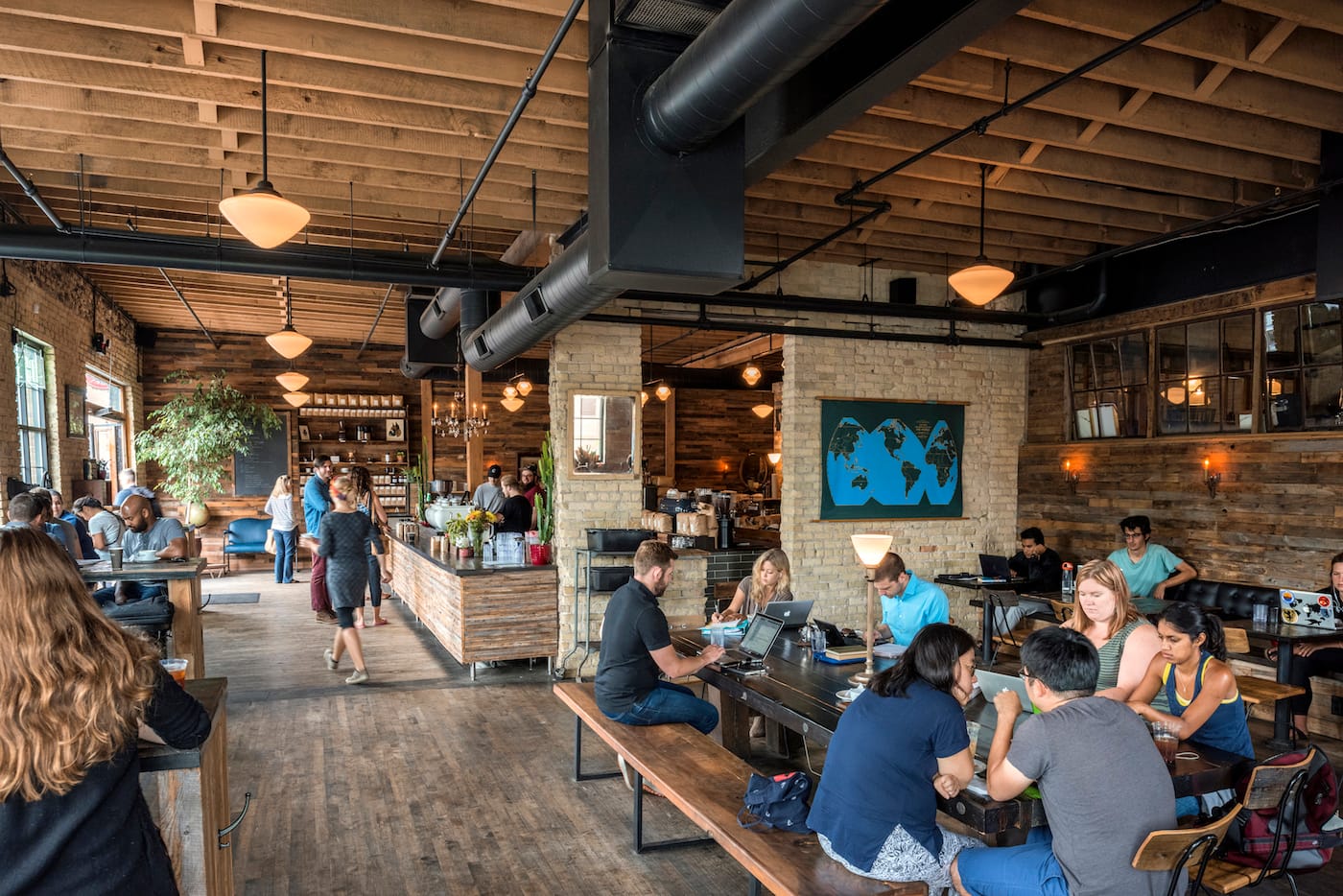 First & First redesigned the Broadway by gutting the building and started from scratch, with Remes taking a rather improvisational approach. “What was interesting was once we got into it, the property started telling us what it wanted to be,” Remes said. “We go with that flow.” The building is now home to a sleek, millennial-friendly coffee shop called Spyhouse, a yoga studio, retail shops, a hair salon, office space for Buzzfeed, plus 612 Brew.