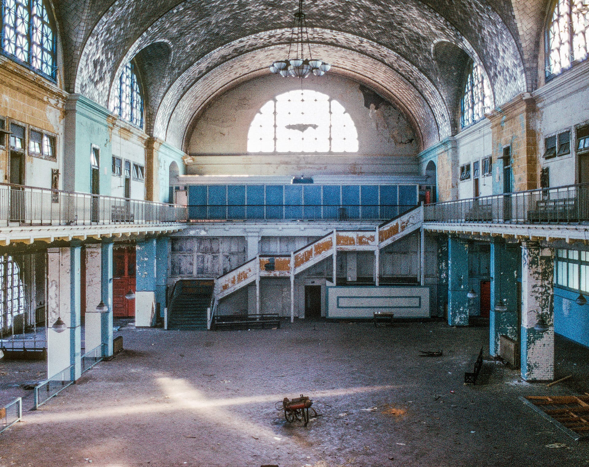 Called “ruins porn” by some, photography of abandoned places is attractive in part because of the inherent difficulty of access to the subject. How did he get there? will be the first question for many. For those 1970s Ellis Island captures, Buehler credits his childhood friend’s rowboat. When he was 17 years old, the two boys set out from the “teeming shore” with a camera borrowed from the Young Filmmakers Foundation, a cooperative on the Lower East Side. This month, the New York Times program Op-Docs is airing a digitized version of the 16mm documentary film they made about the island.