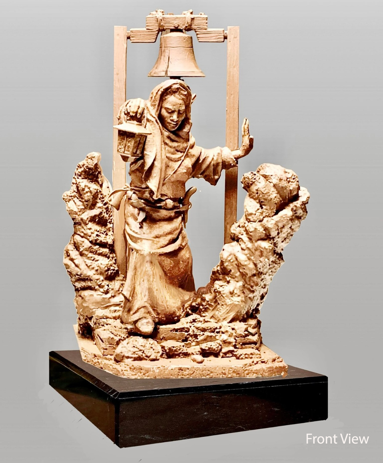 Now, selections for the final design have been narrowed down to five artists, each with a very different vision for the permanent statue honoring the Underground Railroad legend. Vinnie Bagwell designed a nine-foot bronze statue of a young Tubman freshly arrived in Philadelphia. The skirts of her dress would feature the faces of people who escaped slavery, Adinkra symbols, and portraits of other notable abolitionists including William Still, Thomas Garrett, Thaddeus Stevens, Lucretia Mott, and Frederick Douglass. Richard Blake’s proposal envisions Tubman standing beneath a liberty bell and lighting the path to freedom with a lantern, while Alvin Pettit conceived of a design that shows Tubman carrying a military rifle on her back, in commemoration of her leadership role in the 1863 Combahee Ferry Raid. Another proposal by Tanda Francis, who was also a finalist in New York City’s open design call for a Shirley Chisholm monument, imagined a statue with multiple intersecting silhouettes interspersed with polished bronze panels titled “Together In Freedom.” In Basil Watson’s design submission, he wanted to illustrate Tubman as a warrior and a leader. His proposed 13-foot statue would depict Tubman pulling three loosely modeled figures forward up a slope.