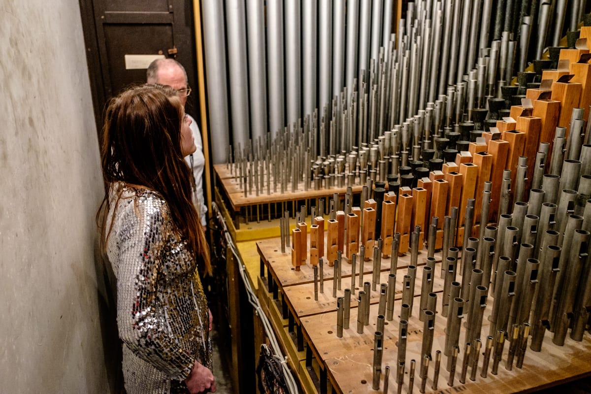 Martin said that as part of the Philbrook’s current exhibition, Museum Confidential, “an artist built a motel lobby, and we have local musicians playing inside it on Mondays, like NPR’s Tiny Desk Concerts.” Both Valerie and Lauren got to listen to a live performance along with museum staff.