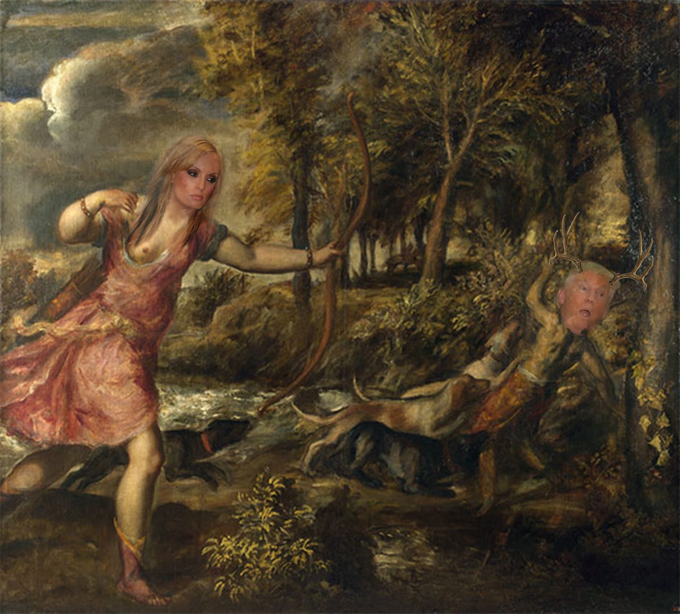 After peppering his flesh with her deathly silver shafts for several millennia, she grew weary and wanted closure, whereupon her handmaiden Callisto, ever of sweet disposition, put forth this proposal, “Why not, dread Mistress, transform Trumptaeon into a Stag so that his own Dogs, McConnell, Ryan, and Pence, will not know him and will rend his flesh from his bones until your uncle Hades should find a fit eternal torture for him in the underworld beyond Styx.”