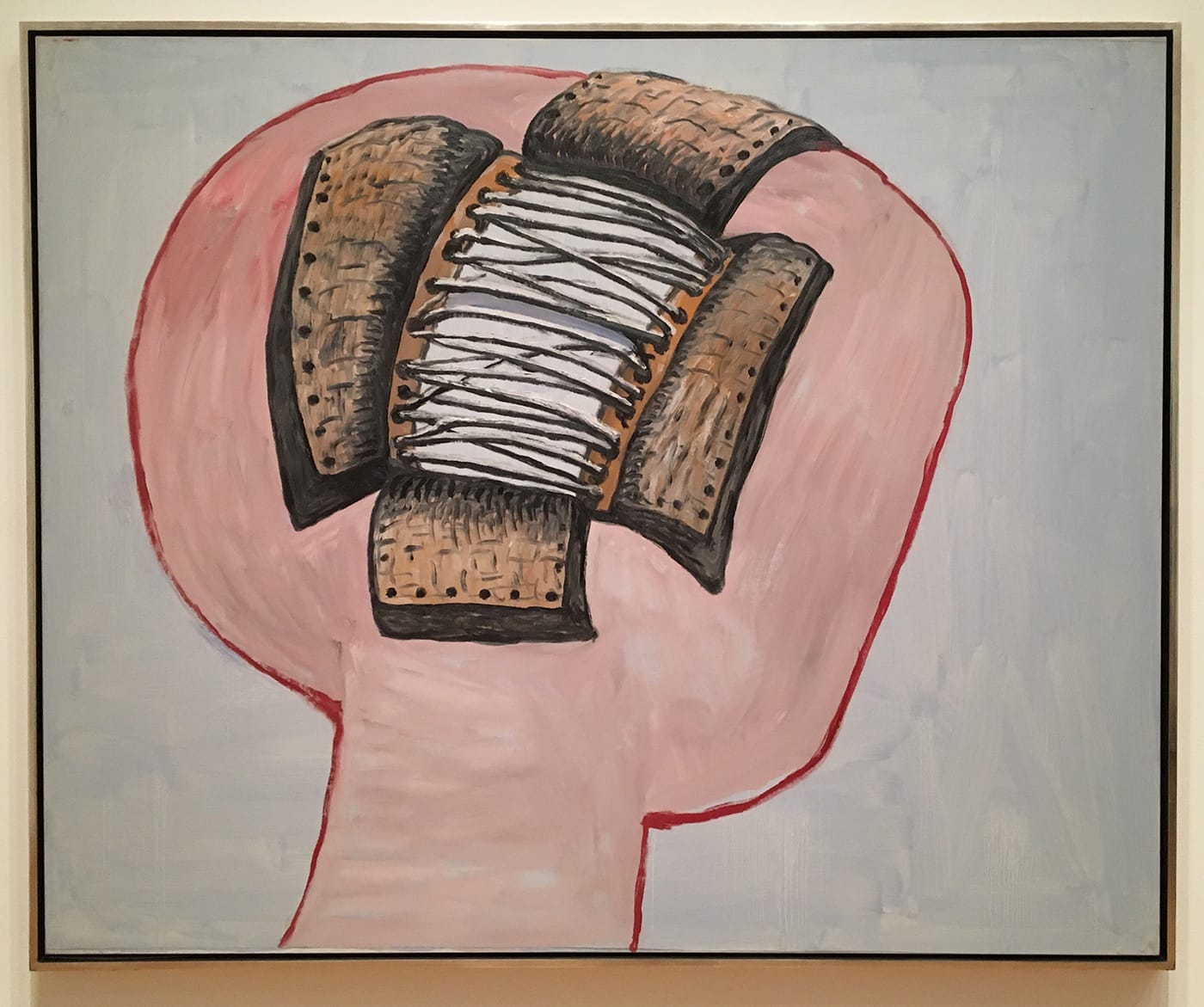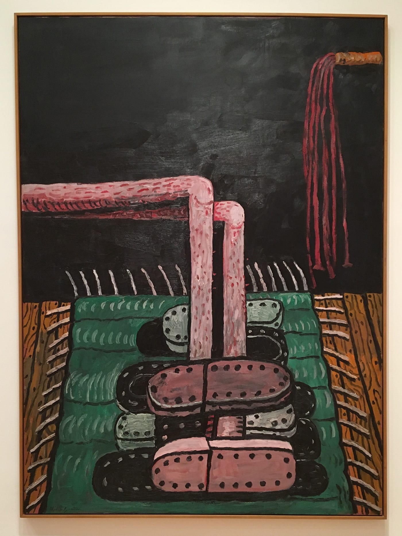 A case in point is Philip Guston, whose paintings are arrayed in the second room of The Long Run, adjacent to a gallery filled with an eerily restrained interior environment from Louise Bourgeois and several understated works on paper by Robert Gober. While there was nothing particularly revelatory about the group of Guston’s pictures, all done in his late figurative style, the selection stopped me in my tracks.