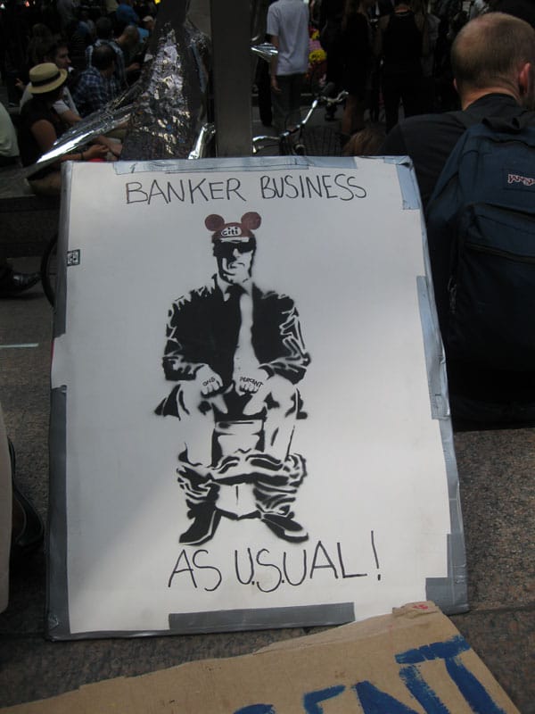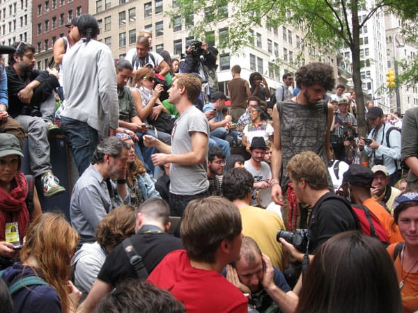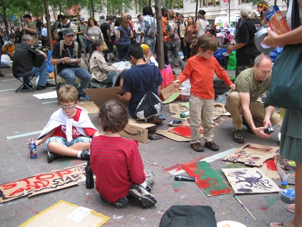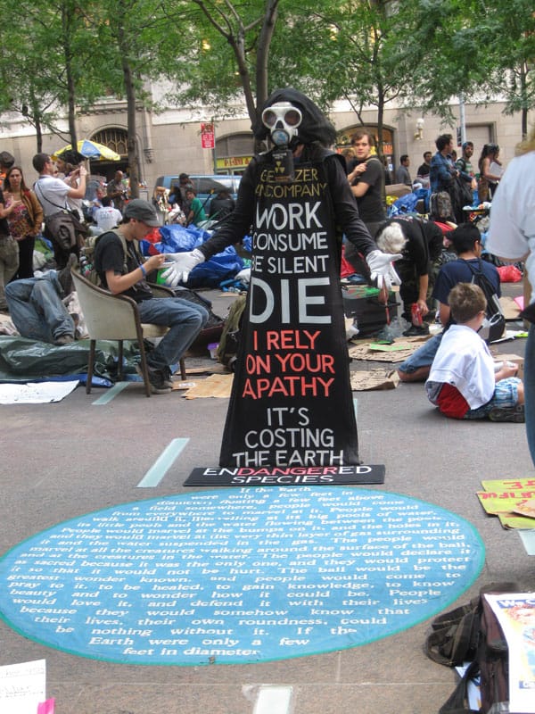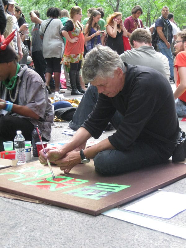 Editor’s note: Our reporter Liza Eliano was on scene this afternoon in Zuccotti Park. She has been following the story for over a week and will be filing her report from today later tonight, but until then, she sent us these images of some of the artistic going ons as part of Occupy Wall Street.
