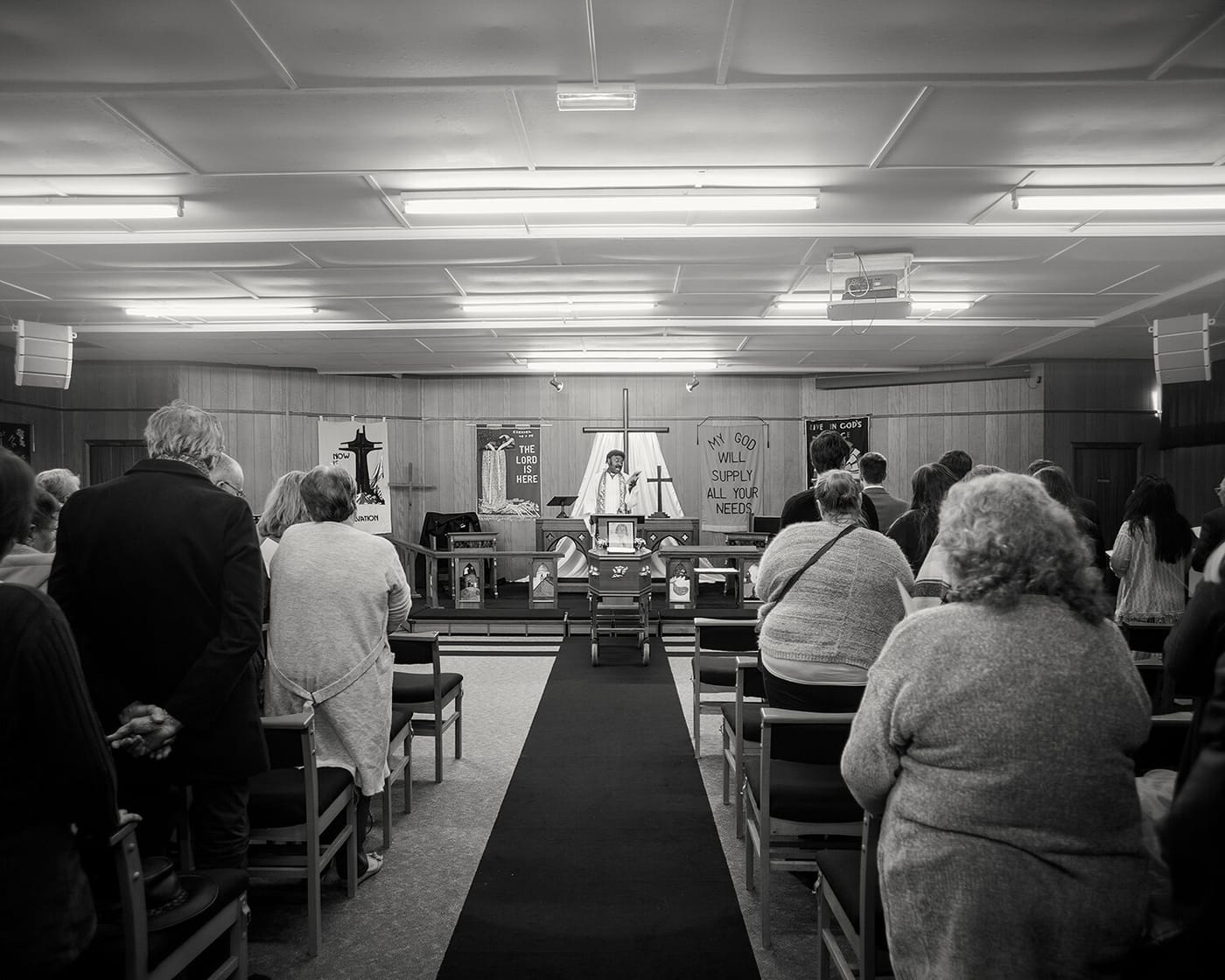 The imagery presented by Easton is not just of community members, but indeed a picture of an entire place — from rows of houses and panoramic views that occlude individuation, to gathering places like barbershops and houses of worship, to up-close portraits of families and individuals presented in their daily context.