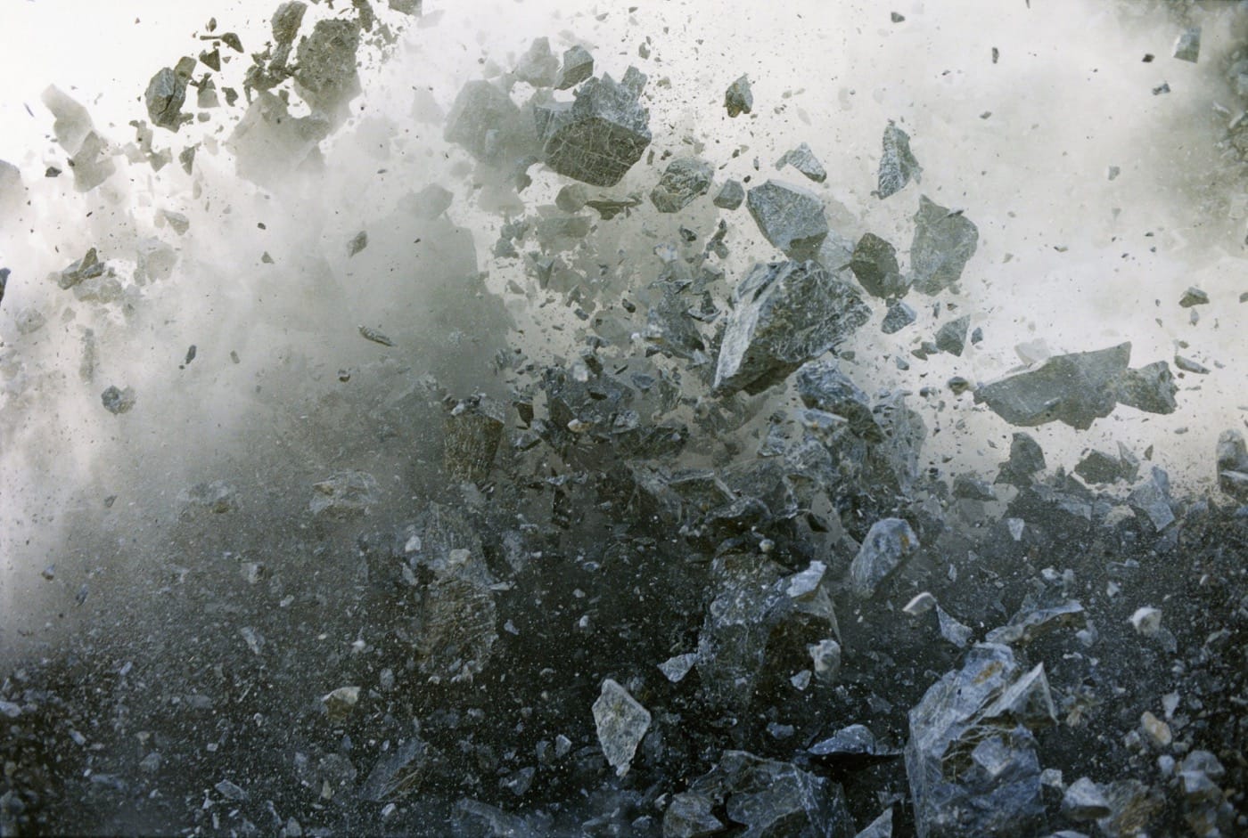 Naoya Hatakeyama’s documentation of the trajectory of the earth’s resources from raw materials to commodities — specifically the journey of limestone from rock to concrete — is a piercing indictment of industrialization. But his method is more omniscient eye than the activist bullhorn. Whether he’s capturing the explosion of limestone into little pieces in his Blast (1998–2005) series of close-up photographs, or mapping the textures of dense urban life, Hatakeyama’s photographs keep an emotional distance.