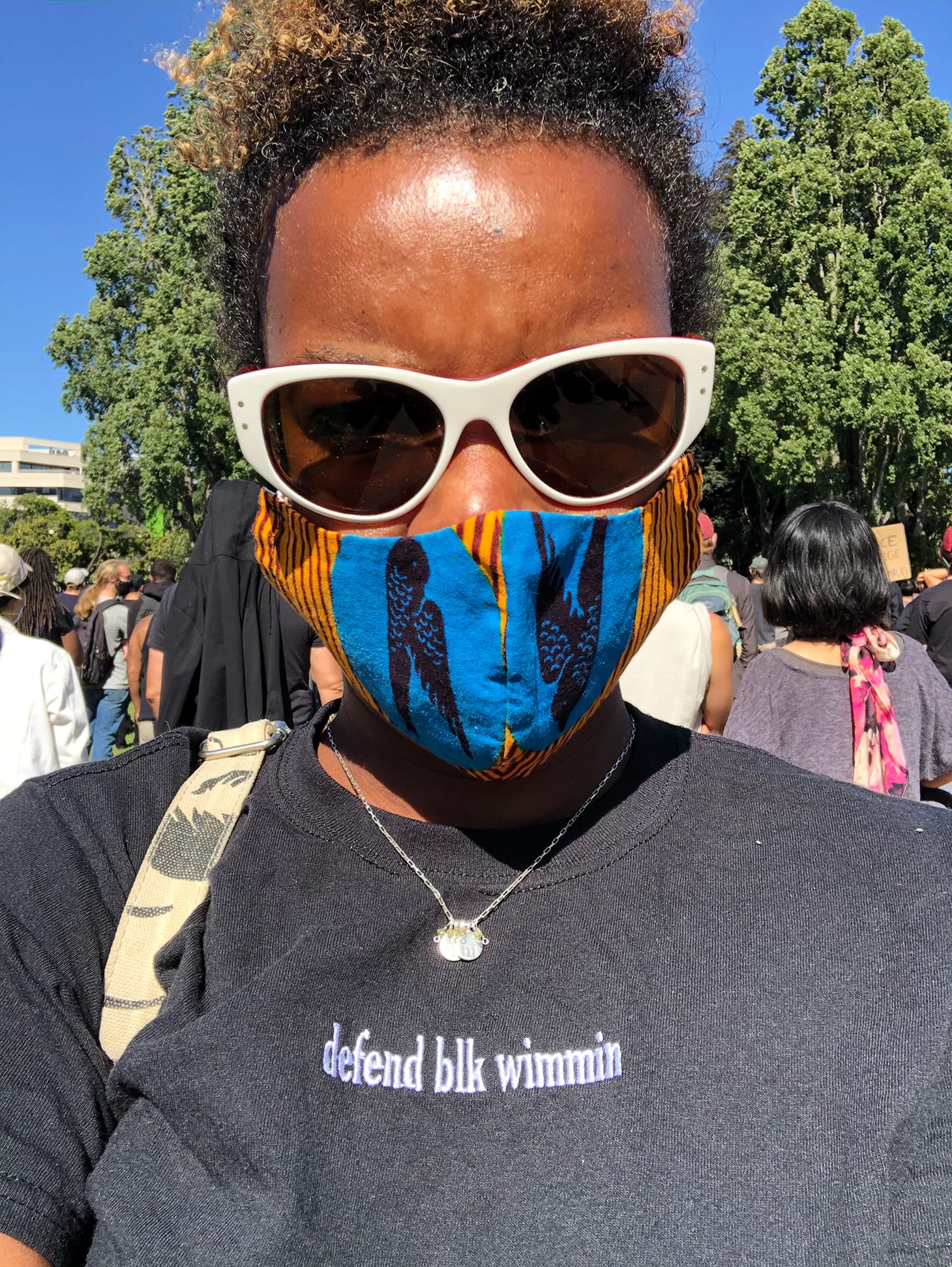 And then the last thing, I guess, I would say that I think is really important about this moment visually, is simply the masks. Because the masks are doing the simultaneous work of protecting us, protecting our health, and protecting each other. They become a symbol, as well, of ‘I care about you. I care about me.’ It is the Namaste of the moment. But for protests, they also are about reducing recognizability and visibility. We don’t all need to see each other’s face. We don’t need to know. The security against surveillance is also really important. I actually don’t want the masks to go away.