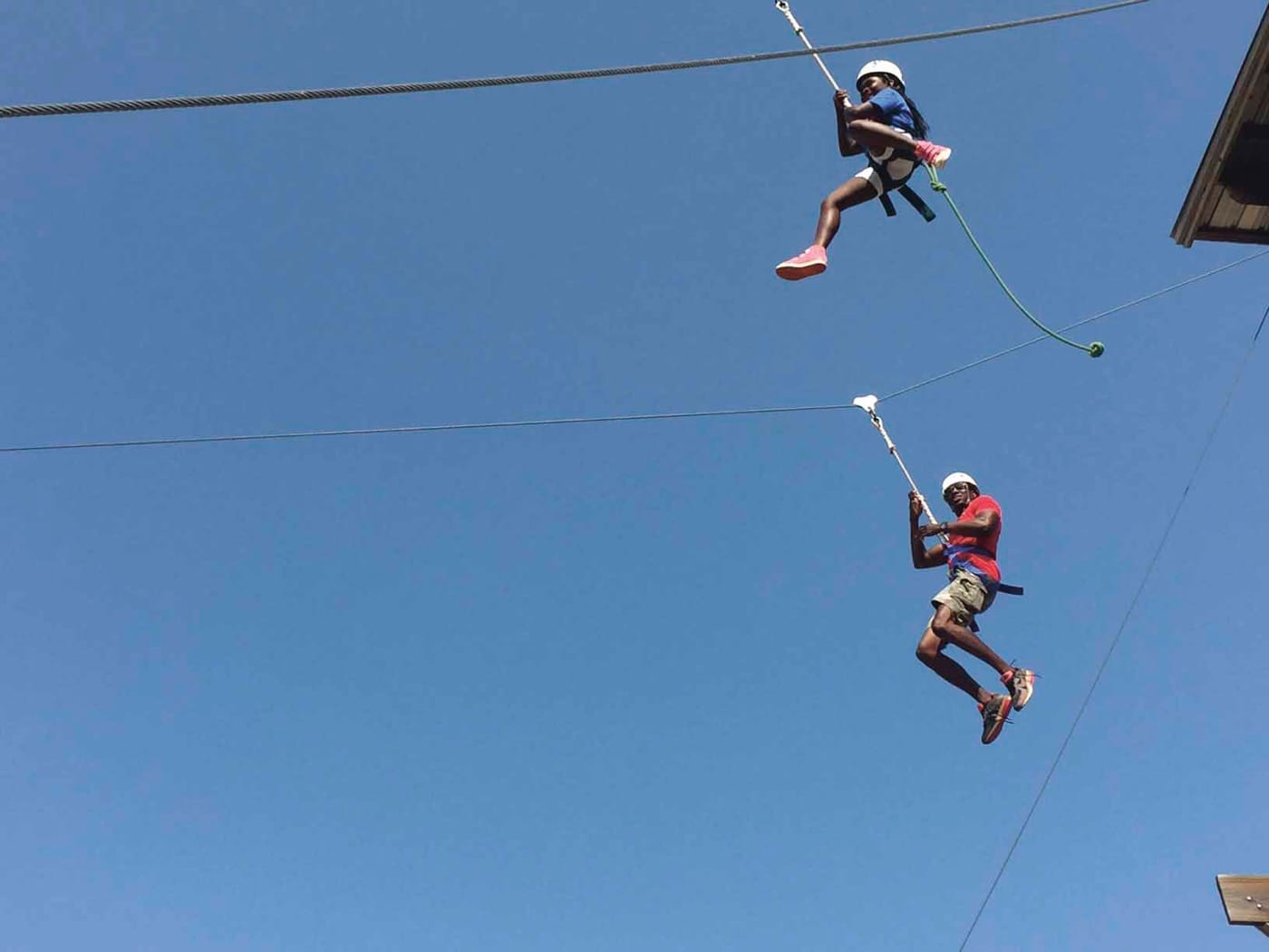 The images that follow continue along the thread of this theme of fatherly intimacy. There are deeply poignant snapshots, in which fathers and their children mug for the camera, along with unselfconscious and even haphazard images, portraying these men as they go about the most quotidian tasks of life: cooking and eating, grooming, reading, traveling, and sleeping. It’s the proximity of fathers to children in all of the photographs that symbolizes their emotional connection. Even when the fathers are not holding their children’s hands or hugging them, they stand close, attentively watching them swoop down a zip line, ride a small pony, or balance themselves on a bicycle.