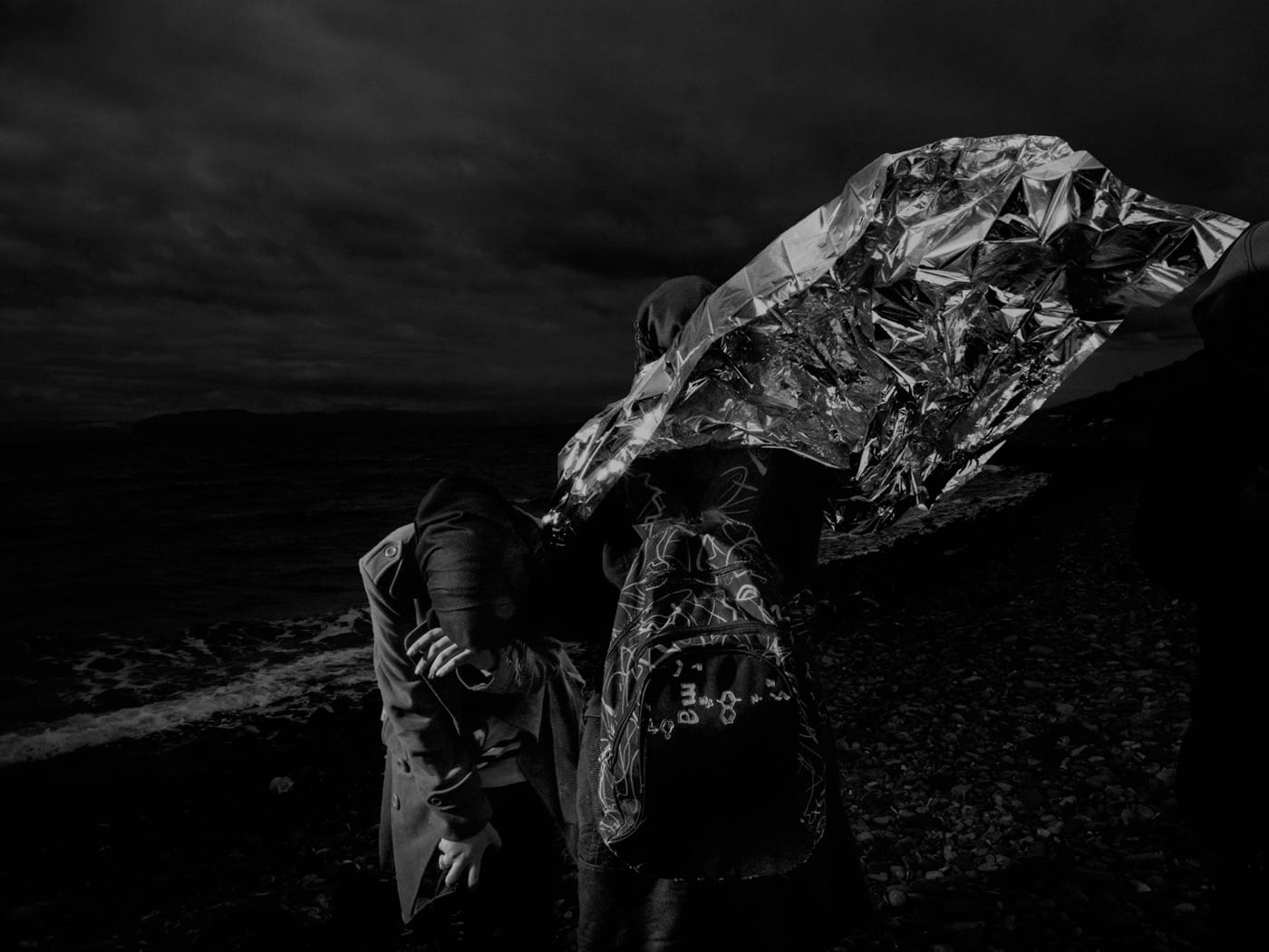 Once you get past their alluring chiaroscuro, you might notice the problem with Alex Majoli’s documentary photographs at Howard Greenberg Gallery: they aestheticize the misery of others. Amazingly, Majoli appears either uninformed by or uninterested in years of academic scholarship and considered discourse on how the aestheticization of human suffering is, in itself, a way of dehumanizing the subjects of images. In light of this critique, the people in his photographs become stand-ins for some universal crisis, essentially metaphors instead of complicated, difficult human beings. Majoli doesn’t even shy away from acknowledging the artifice he uses to make these presentations: the title of his exhibition, SKĒNĒ, refers to the structure that served as the backdrop in ancient Greek theater. There is no shame in his game.