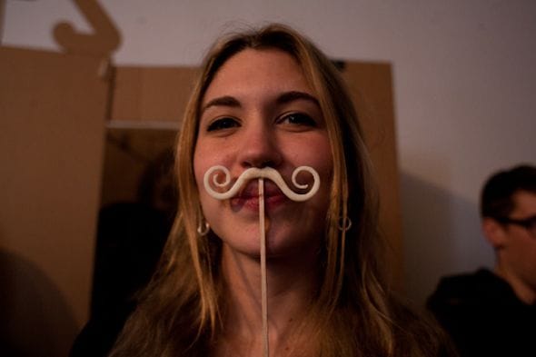 “Yaay!” happy as a little girl who just found a great toy, Ashley Zelinskie grabbed my shoulder as soon as I walked into 319 Sholes this past Saturday night. “You have to try my GIF booth!” she said clapping her hands. She handed me a toy moustache on a stick. Ashley proudly pointed to a cardboard booth she had concocted for Art Hack Day. Loud music blasting, crowds of people as excited as Ashley, I walked into the booth where a laptop captures a series of images of me with my toy moustache generating a GIF that was immediately projected simultaneously in the gallery and onto a video billboard in midtown Manhattan.