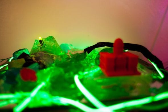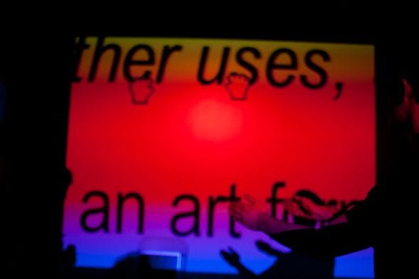 Last weekend, 319 Scholes invited 60 artists who work with new media and technology into their space to crack open the process of art making “with a special reverence towards open source technologies.” Last Friday, we gave you a tour of the process and space. Now take a closer look at some of my favorite final products presented on Saturday night.