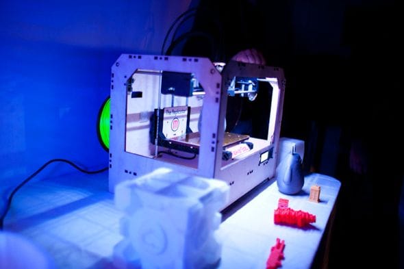 Guys from 3D printer company Makerbot Industries assembled their largest MarkerBot yet, the Replicator, for the first time at Art Hack Day.