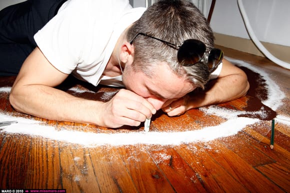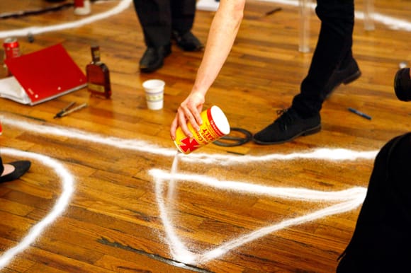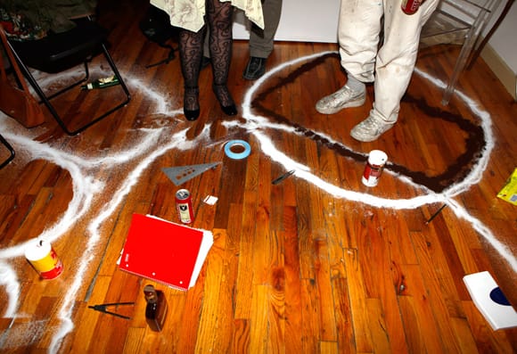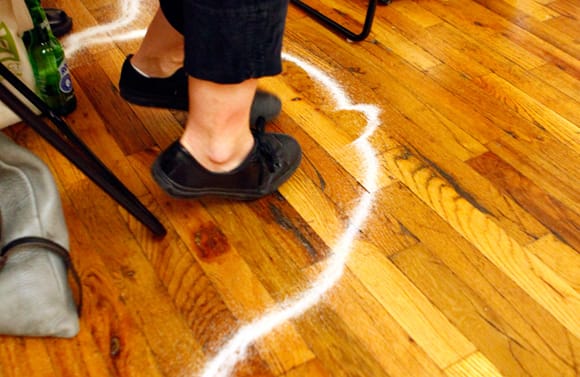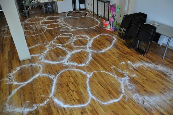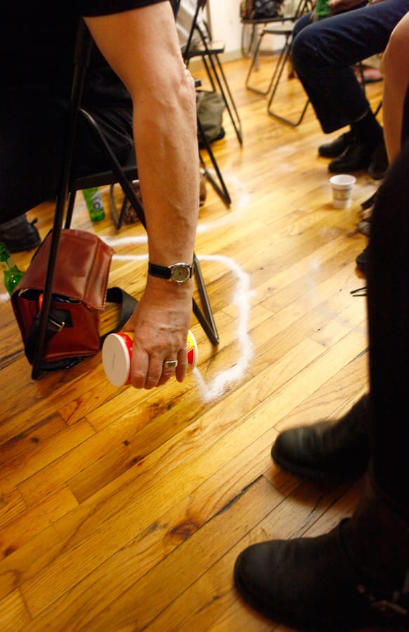 In addition to the IRL crowd, over a hundred people (at various times during the event) tuned in online to watch Powhida and his two fabulous assistants (or are they apprentices?) conjure up spells and hexes. To ensure that all went smoothly, IRL guests were asked to encircle themselves with what appeared to be salt.