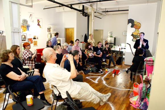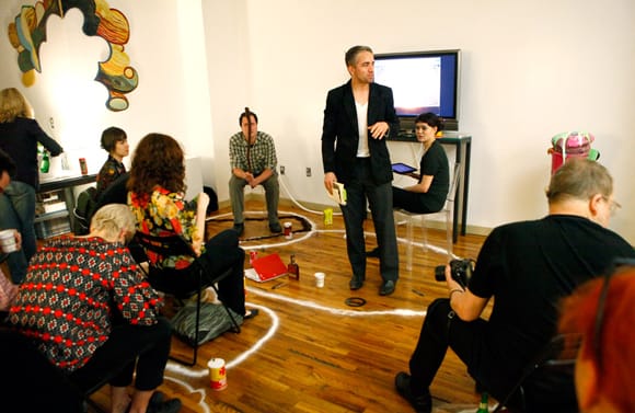 Over 30 people attended our Friday night performance by artist William Powhida, titled “Surviving the Art World Using the Art of Sorcery.” The first in our monthly lecture/performance/screening/event series, Powhida was able to explain the concept of value in the art world and the role of “magic.” T
