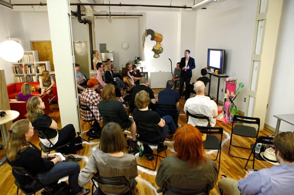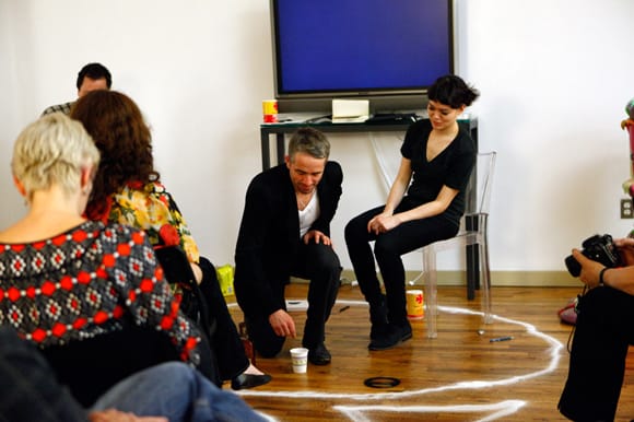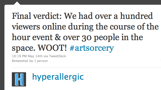 While some technical difficulties (a suddenly bad Internet connection) initially stalled the live webcast, the quick thinking of Hyperallergic publisher & self-confessed marketing/tech geek Veken Gueyikian saved the day — everything went smoothly after that.