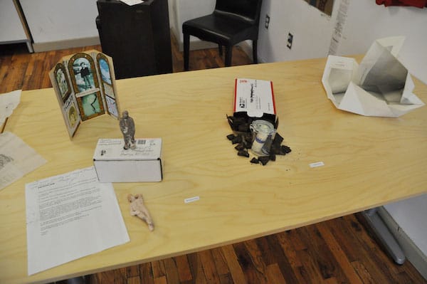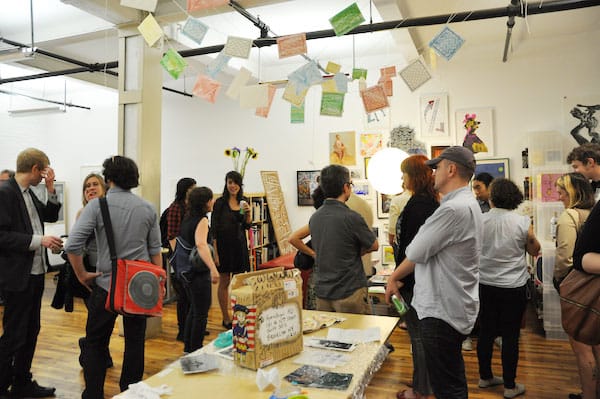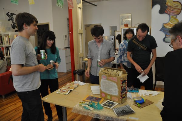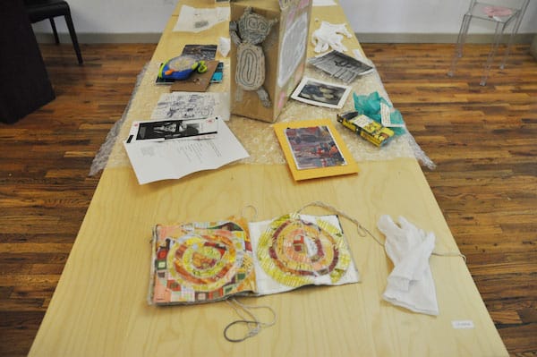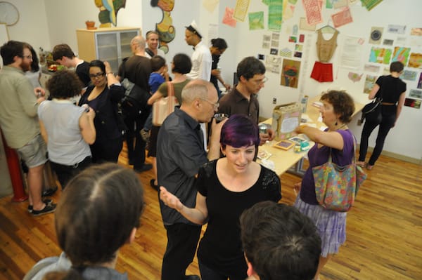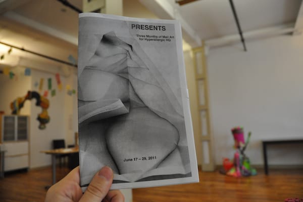 We had a great turn out last night for the opening of Presents: Three Months of Mail Art for Hyperallergic HQ. Over a hundred people came through during the opening night of Northside Open Studios to take a look at the 120+ submissions from around the world.