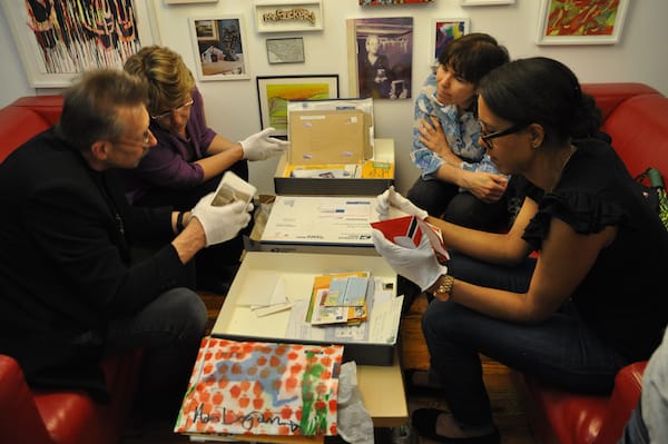 Many of the guests spent a lot of time going through all the mail art we organized in archival boxes.