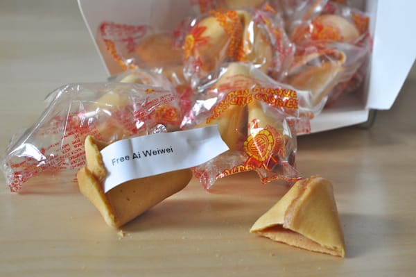 A close-up of Bernard Klevickas’s project for the opening night of Presents. The specially-ordered fortune cookies arrived by mail to the office filled with a timely message.