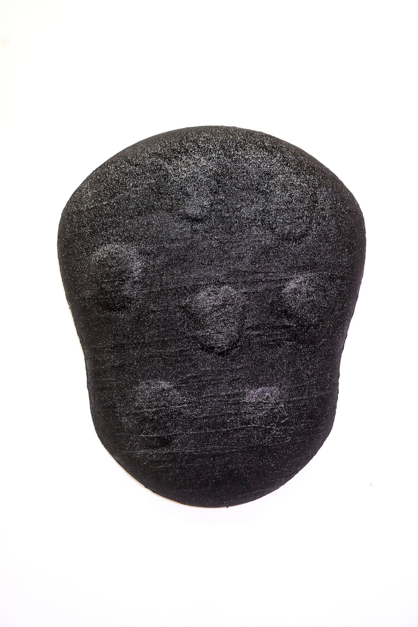 In “7” (2017), a large glitter-and-fabric installation on wood, Logan boldly introduces his exhibit’s central figure: a featureless Black head. This totem, like a sphinx posing a riddle, forces viewers to confront what they see reflected in its inscrutable Black depths. Throughout Fatal Links, Logan uses the spatial and tonal variety of this Black head to create a visual and economic language for conveying his social critique of America’s race psychology, demonstrating the essentiality of the Other to defining all other features of the American tableau.