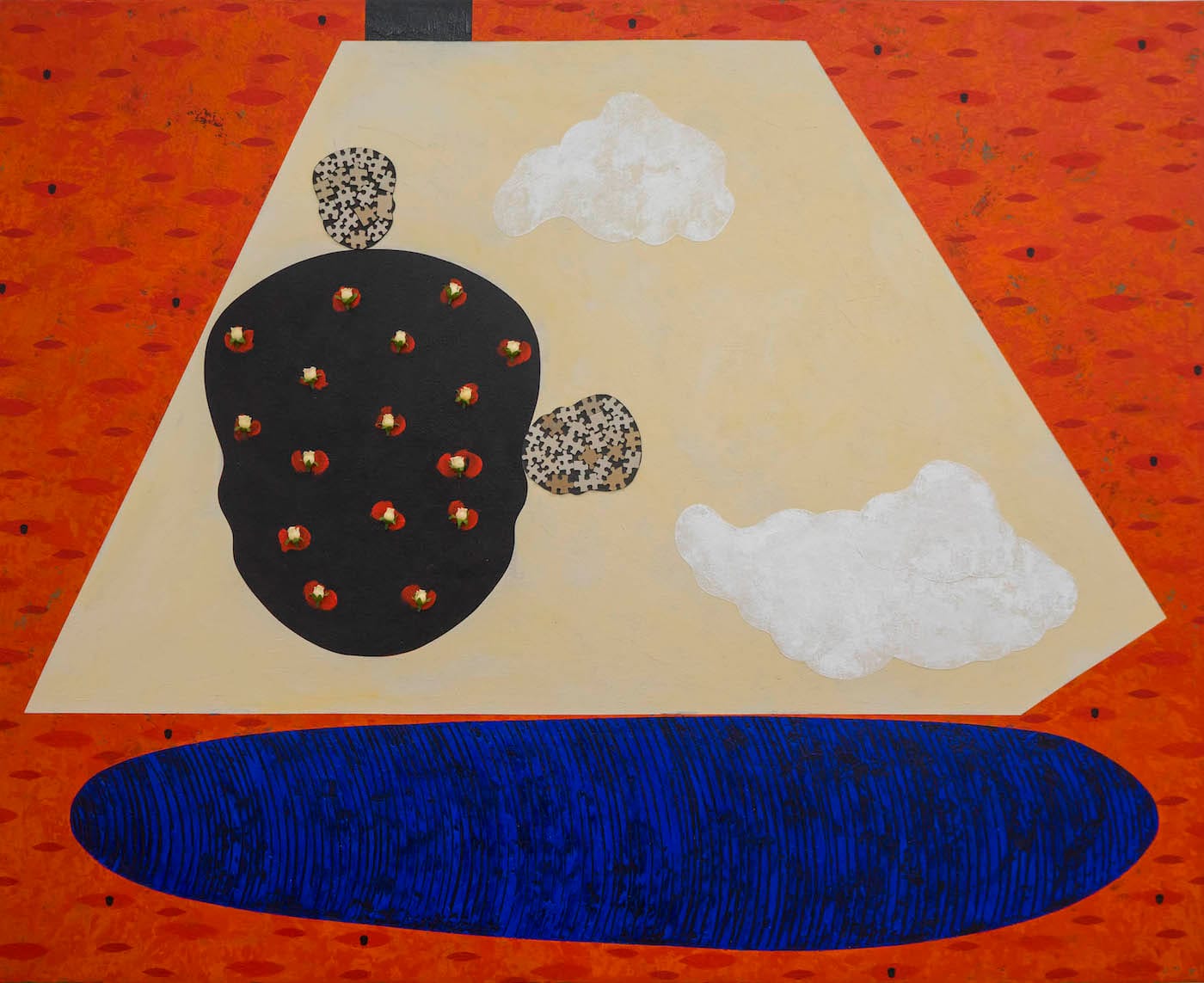 The titles of Logan’s works also help to convey his sharp irony. In “The Margins” (2007), the Black heads are again dominant and paired with deep reds, like blood, creating a paranoia of pigments that, contrary to the title, are not marginal at all — they seem, in fact, to be moving in on the viewer, at the center of everything.