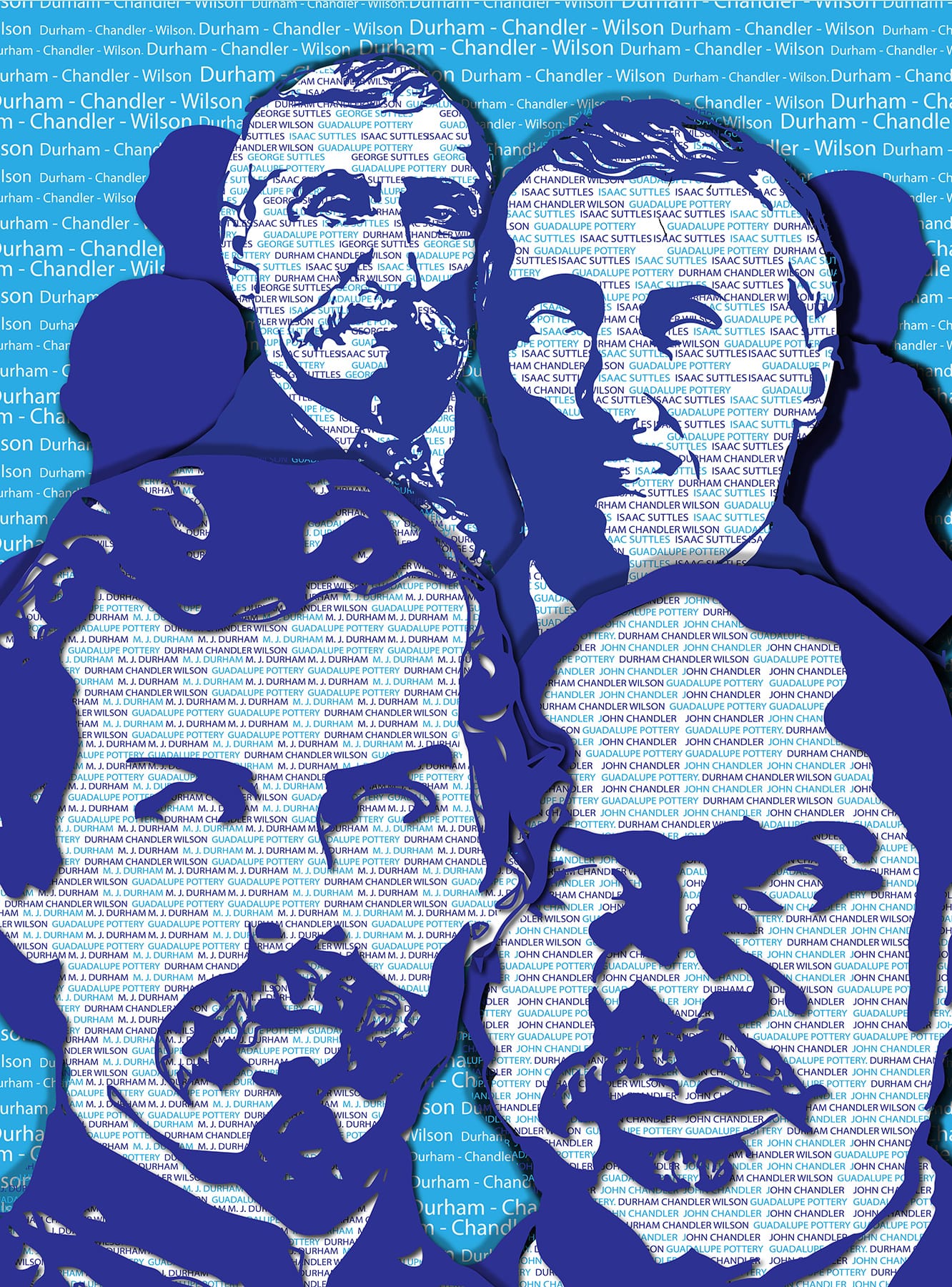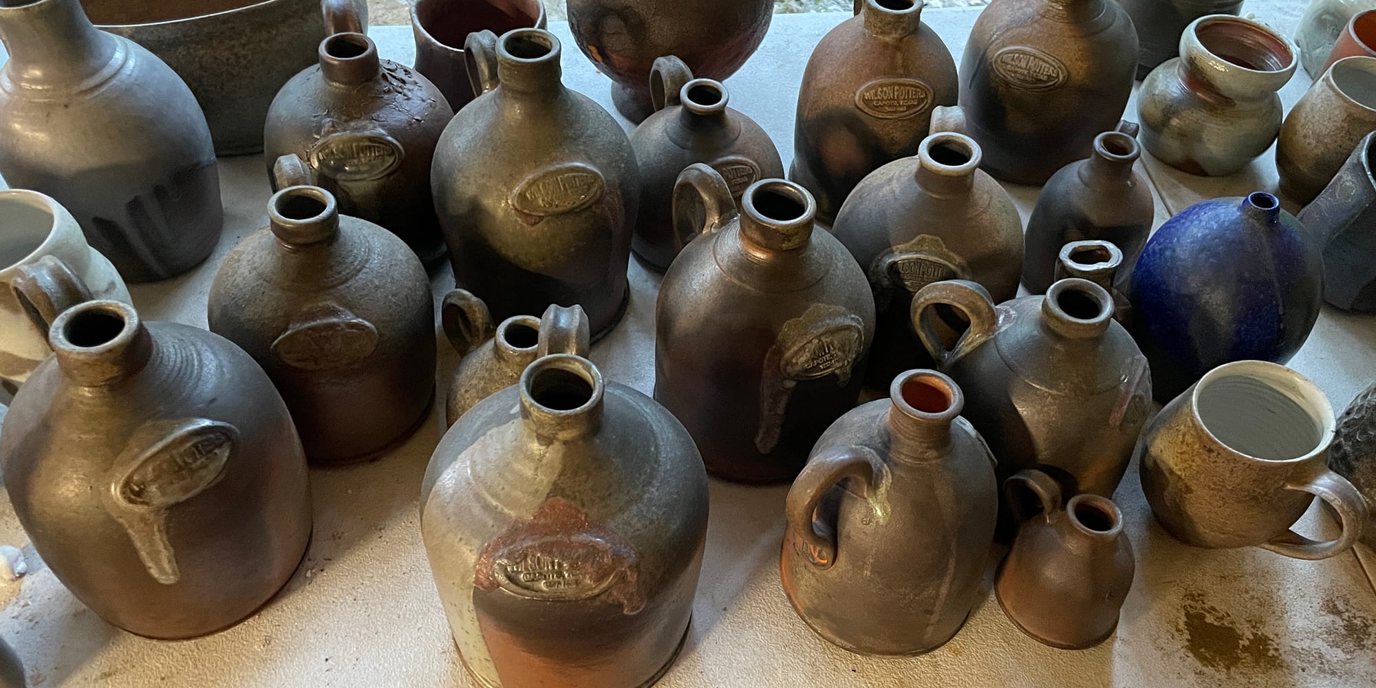 In 2020, I curated a solo exhibition in the Carillon Gallery at Tarrant County College South Campus in Fort Worth, Texas, which suggested a narrative and timeline to these potters by tracing the development of certain techniques. The centerpiece of the show, however, was not the ceramic pieces inspired by the Wilson potters and created for the exhibition, but rather the research identifying those who worked at one or more pottery sites seen via posters, including James and Wallace (and possibly Hiram) Wilson. Pots attributed to the first site, Guadalupe Pottery, suggests that Isaac and George Suttles, potters from Ohio, may have introduced the salt glazing technique found on pieces attributed to the first site's pottery, as the practice originates from those trained in the North. The Suttles brothers later opened a pottery near Lavernia, Texas.