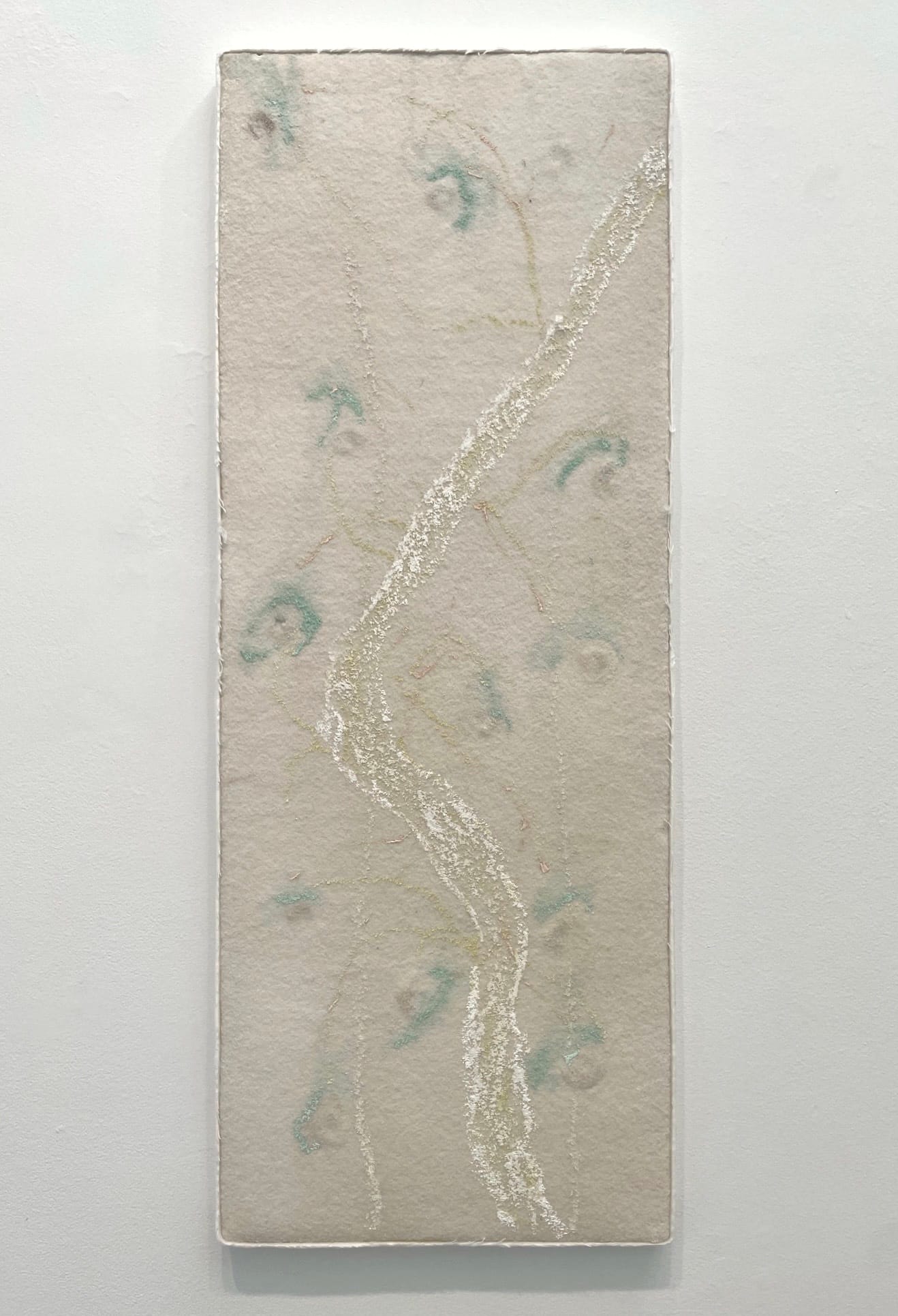 The Italian artist Pier Paolo Calzolari is a breezy alchemist of color, as evidenced in Painting as a Butterfly, his fourth show at Marianne Boesky Gallery. If painting is a butterfly, it must exert a delicate sensorial pressure with its formal “flutter.” Such is the effect of some 30 paintings by Calzolari, most of them made in the past five years, with three dating back to the 1970s and ’80s. Calzolari frequently layers the new works with salt crystals. He then applies pastels, gouache, or tempera to the canvas; the effect is that the pigments are absorbed unevenly, producing dense blotches, but also areas where color dilutes and sinks, or washes out entirely. The resulting tensions — between permanence and evanescence, expressed in, for example, tempera’s opaque solidity versus the salt’s flickery luster — lie at the core Calzolari’s alchemy.
