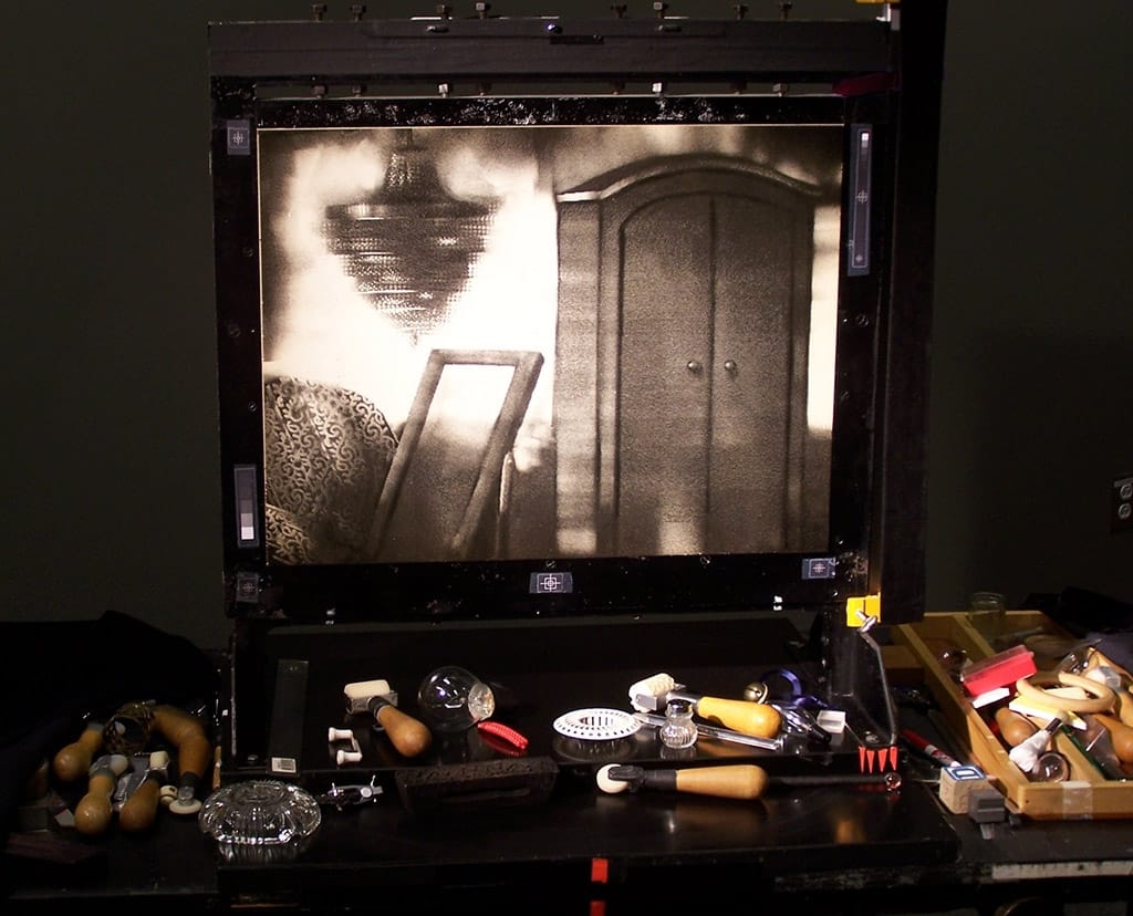 Developed by husband-and-wife team Alexandre Alexeieff and Claire Parker in the 1930s, pinscreen animation is a painstakingly labor-intensive technique that creates lyrical black-and-white animations. The pinscreen is a white board pierced by thousands of tiny pins, and lit from the side. Animators use objects to push groups of pins through the screen at various depths, with the shadows cast by the pins producing a wide range of tonal gradations depending on how far they protrude. The results are photographed one frame at a time. Created completely by hand, the analog process yields a warmth and idiosyncratic quality hard to reproduce with digital technology.