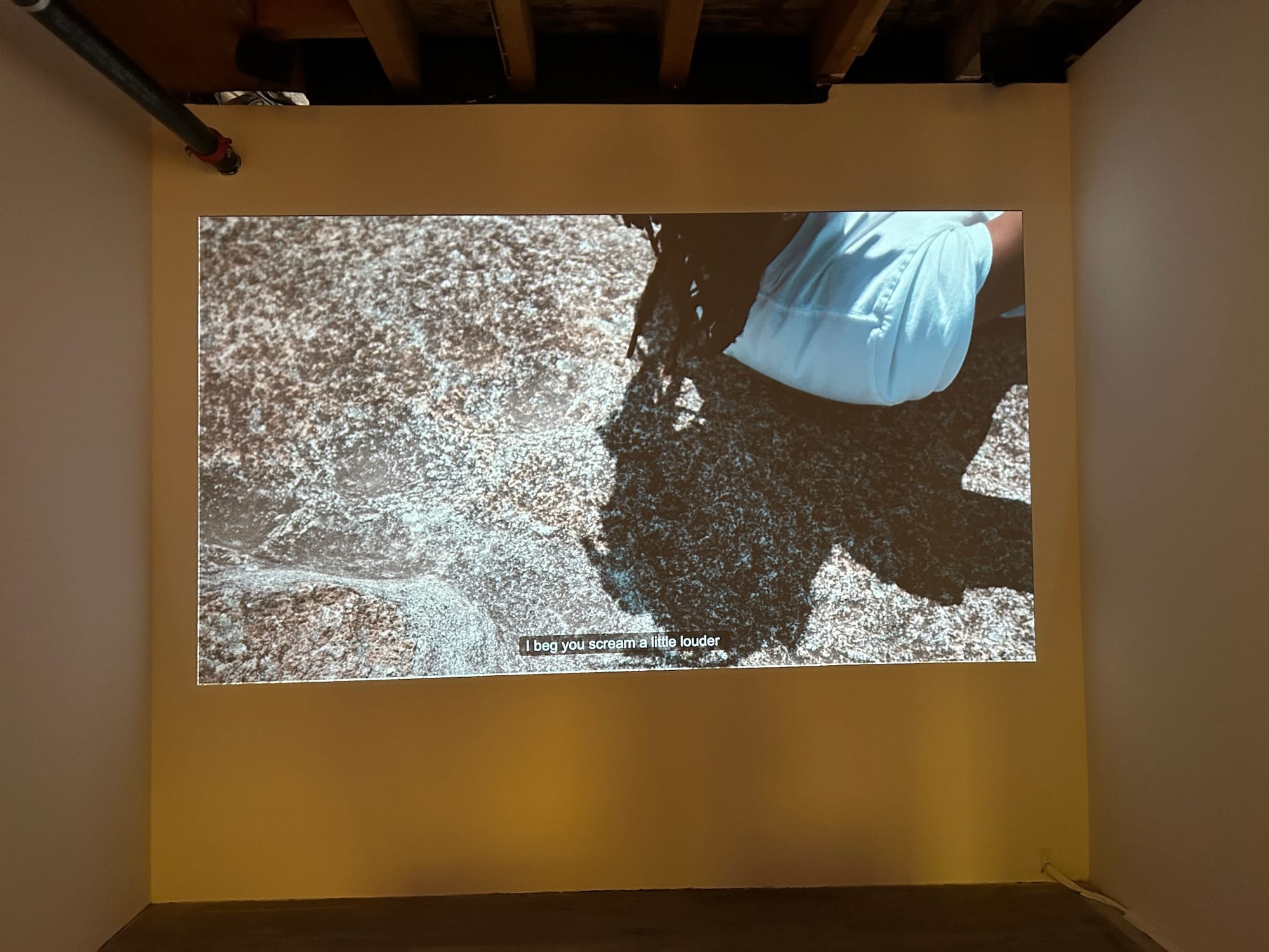Alongside ¿Quién no ha intentado convertir una piedra en un recuerdo?, the nonprofit is also displaying work by Bronx-born artist Le'Andra LeSeur in its third-floor exhibition space until December 15. Co-commissioned with the Pittsburgh Cultural Trust, the show Monument Eternal centers on a seven-minute film of the same name grappling with the racist legacies of Georgia’s Stone Mountain Park, where a three-acre engraving of Confederate leaders Jefferson Davis, Robert E. Lee, and Thomas “Stonewall” Jackson is on permanent display. The video, which shows LeSeur falling in slow motion atop Stone Mountain's peak, is paired with glass sculptural works and paintings that were created based on the artist’s bodily responses, including physical movements and breathing rhythms, during visits to the public park.