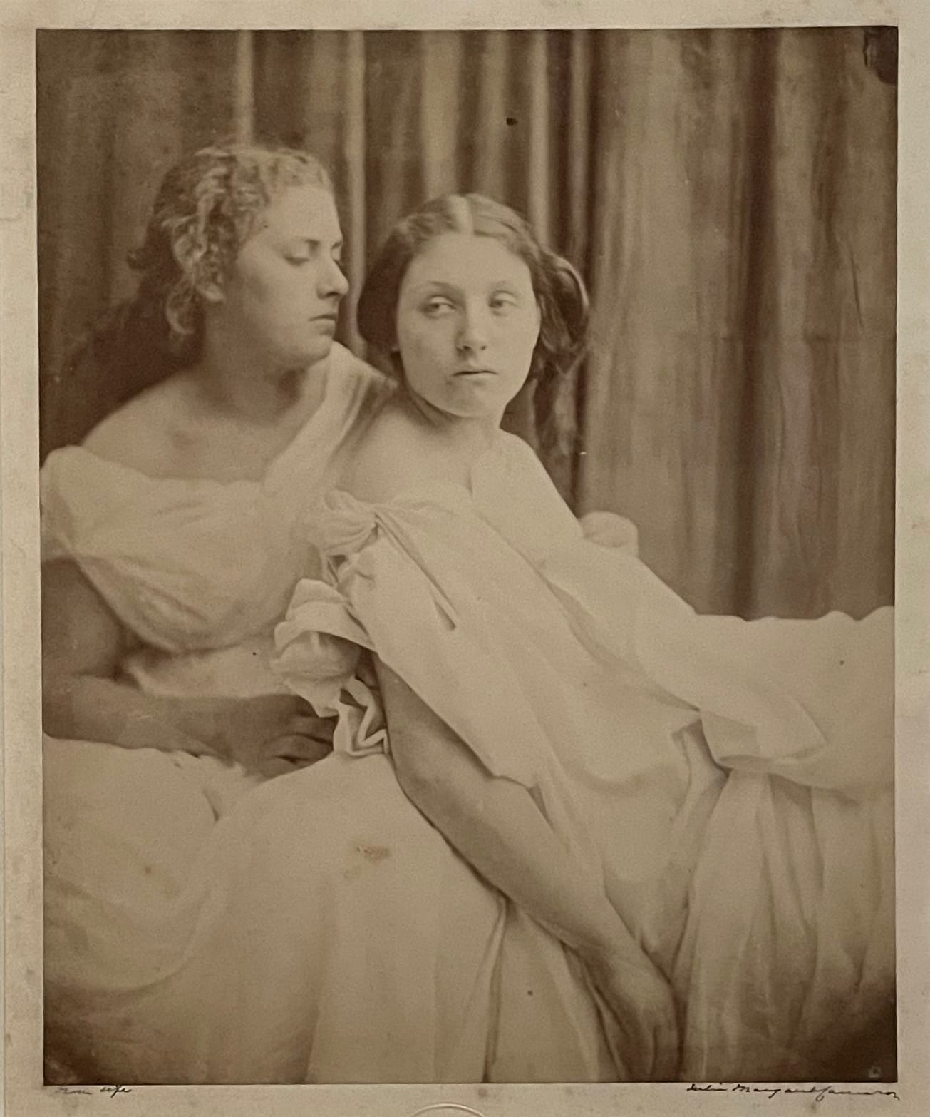 LONDON — Francesca Woodman and Julia Margaret Cameron: Portraits to Dream In at the National Portrait Gallery is all about affinities. The show’s premise is that two innovative women photographers whose lives were separated by a century are connected by remarkable parallels. The massive exhibition of more than 160 works is divided into sections (e.g., The Dream Space, Angels and Otherworldly Beings, Mythology, Nature and Femininity), and some surface similarities are obvious: Both artists were women, had brief careers, worked primarily in black and white, pushed the limits of their medium, and had a feel for fantasy. Alongside these, curator Magdalene Keaney posits thematic correspondences, attuned to the artists’ apparent femininity, and provides visual evidence of the tenuous connections by pairing formally similar images. Angels, nymphs, goddesses, and women with loose dresses and downcast eyes circulate as the ethereal threads that bind the artists across time and place.