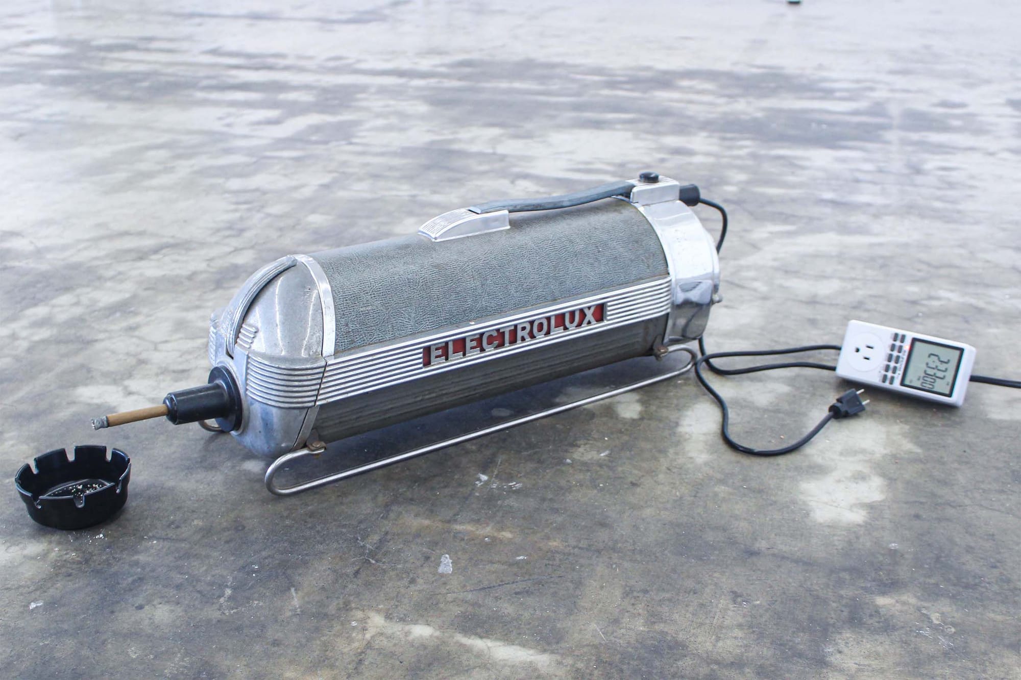 Other prototypes in the exhibition primarily experiment with household necessities, like “Breathing Bed” (2021), with its mattress that subtly rises and falls, and “Electrolux Having a Smoke” (1985–2021), an antique vacuum that enjoys a cigarette, standing in for the housewife who might light up after cleaning to reward herself for a job well done.
