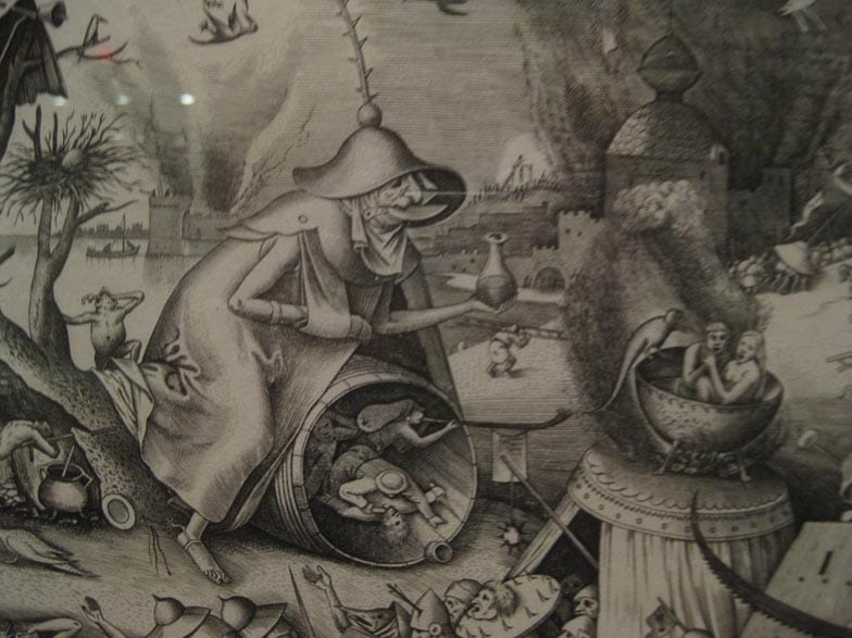 The show is in two large rooms, and I probably could have spent a couple hours there. I usually vote against listening to music while looking at art, but I also know when to follow my instincts. It was time for King Crimson’s In the Court of the Crimson King album. The songs feel connected to the Renaissance. Plus, in the moment, the dual heaviness worked. Sometimes it’s fun to knock on history’s door with the spontaneous. As gorgeous and grand as the tapestries were, what was truly overwhelming in the room was the prints. Print masters Hendrick Goltzius, Pieter Brueghel the Elder, and Albrecht Durer were the ones who made me take off my headphones. The technical and emotional accuracy of their work is actually frightening. Reaching across the centuries their prints had me watching my back, proving once again that the best art has the longest arms.