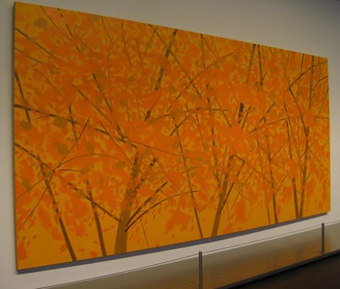 When I broke out into the Carnegie’s permanent collection of paintings, I quickly saw a theme develop, already exemplified by the Alex Katz in the lobby. Unusual paintings by well-known painters, and stunning works by lesser-known artists. A really punchy Julie Mehretu painting was one of the first things I came across. A couple rooms later I found a painting by the Russian-American Raphael Soyer (1899-1987). I had never heard of him. Color me schooled. All this is not to say that the occasional outstanding example of work by Rothko, Bonnard, or Thibault doesn’t work its way into the mix. It does, and it does well. Wayne Thibault’s “Table Setting” (1961) stopped me in my tracks and held me there for a few minutes. This wasn’t a painting. It was life. And I hadn’t even hit the highlight yet, kids. You know the highlight. That’s where a curatorial choice is so strong it actually brings tears to your eyes. On one wall there was a line-up of Robert Ryman, Agnes Martin, and Jo Baer. Minimalist art. Maximalist moment. I’ve been here before. This is par for the course at the Carnegie.