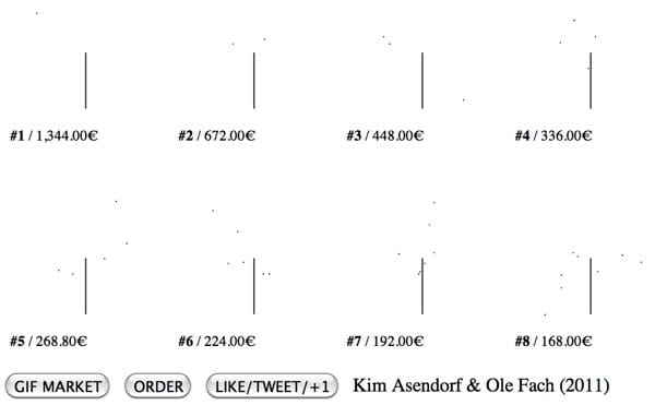 The Creator’s Project blog is looking at the ways people are trying to sell GIFs and other net art online. While they focus on Kim Asendorf & Ole Fach’s new endeavor (which seems a tad boring and intellectualized IMHO), they provide a good overview of many of the options that have already been explored:
