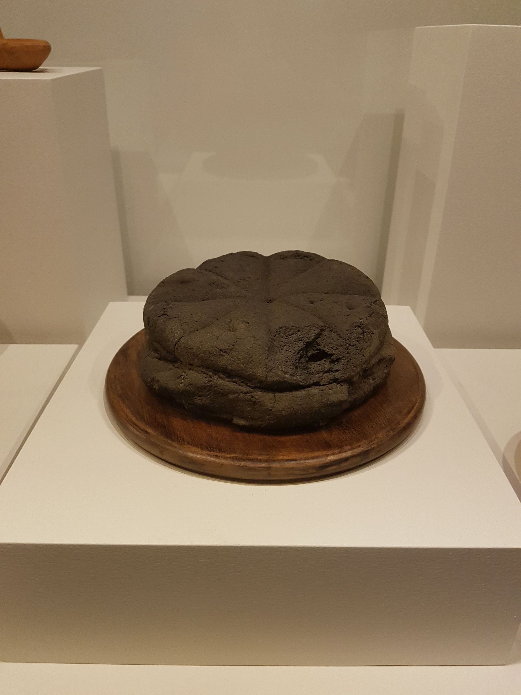 That loaf was made from regular wheat and spelt flour, salt, water, and sourdough starter. Similar focaccia-style breads, such as the one depicted in the fresco, may have included olive oil and spices.