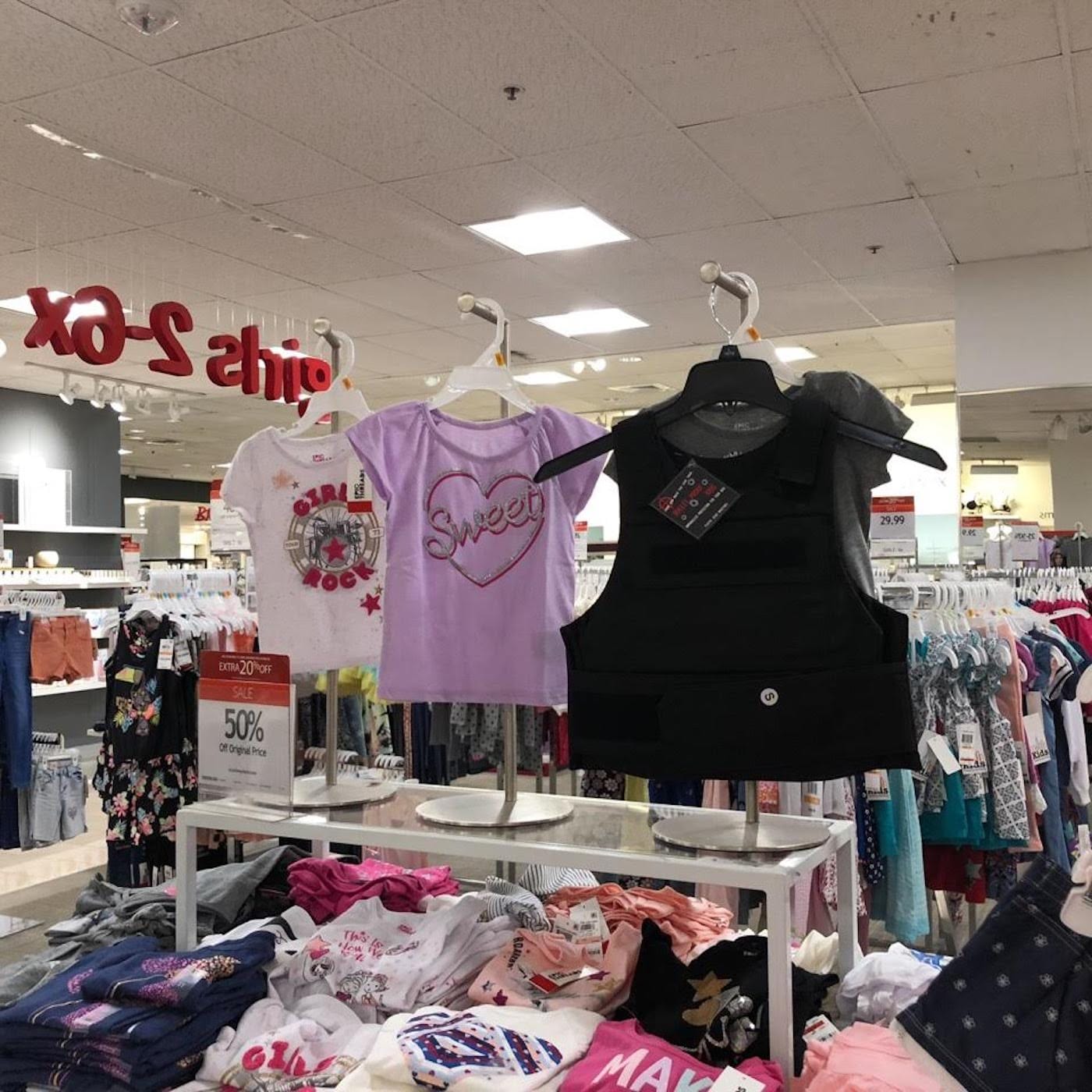 Plastic Jesus has replaced a handful of shopping displays with child-sized bulletproof vests as a satirization of Trump's America.