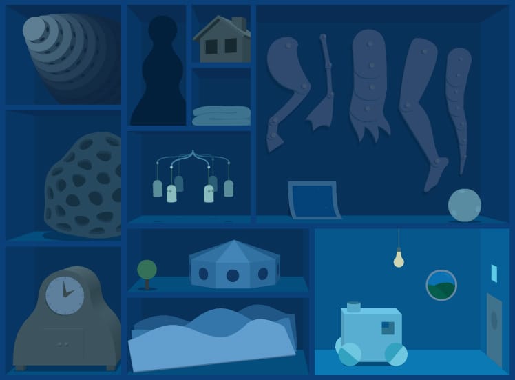 In the first scene of Windosill, what at first appears to be an abstract array of objects turns out to be a child’s bedroom shelf with the click of an interactive light. A wooden toy train is the player’s only avatar, its only goal to move through the right-side door of each level.