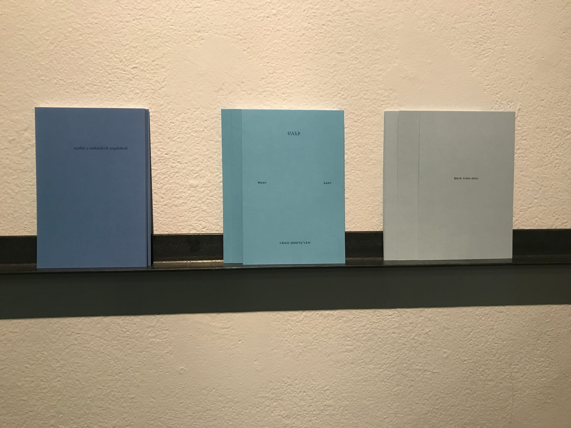 An intriguing artist book by Magali Duzant, A Light Blue Desire (2017), complies blue bromides from across the globe, and blue postcards featuring some of the selections are available for visitors to take home. Blue, in word and concept, can be stretched in so many semiotic directions. The blues are great, but they cast a sad shadow on the color as a metaphor in today’s English, which is further exacerbated by the minority status of the so-called blue states in the US’s broken political system. But blue is not so sad in other languages. One vivid example is the Polish expression for what we might call daydreaming: to think about blue almonds. It captures the futility of idle fantasy so well.