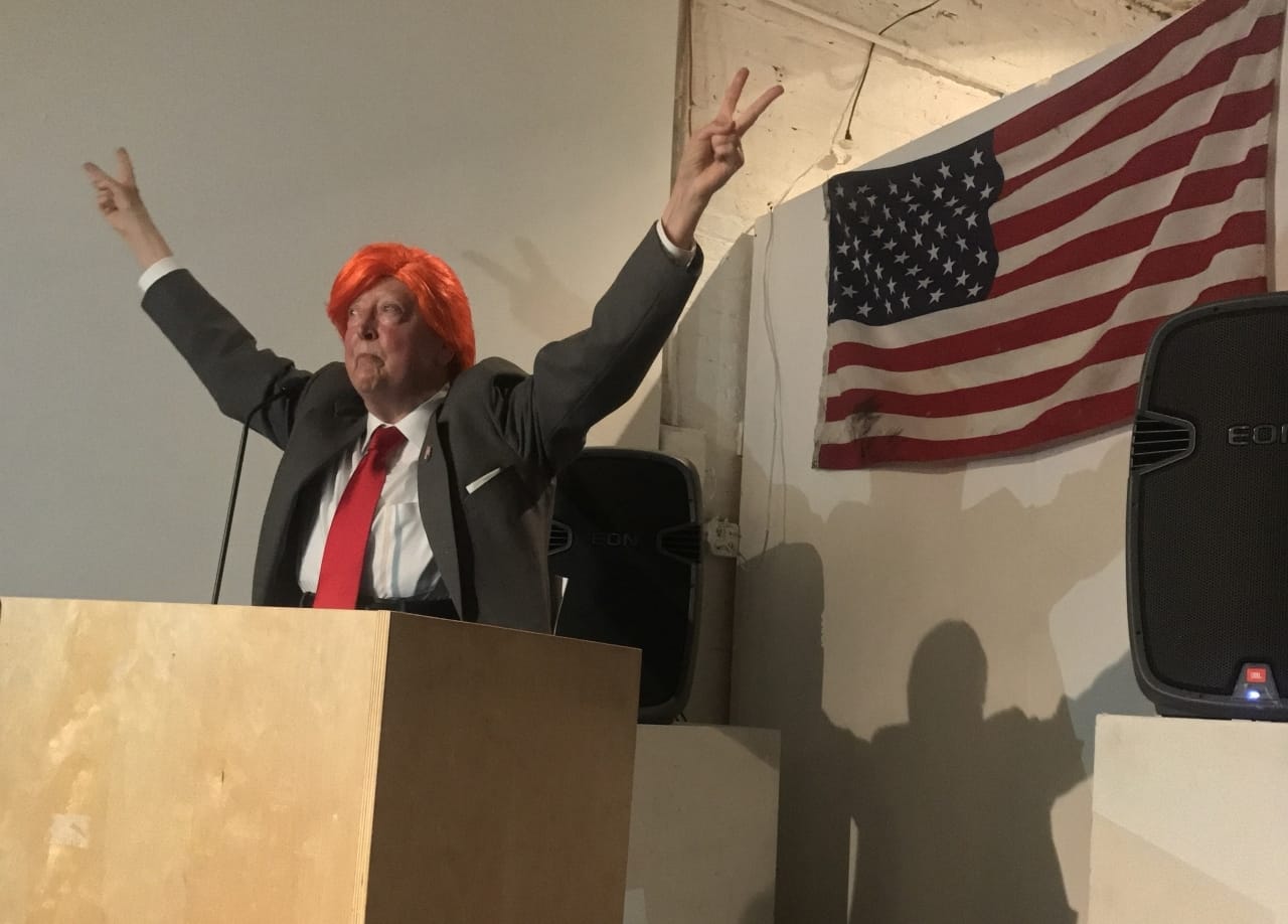Now, it’s debatable whether or not Donald Trump actually speaks English, or even deserves the dignity of a paragraph in this review. A case could be made that he speaks his own crude, over-simplified dialect; coming from Queens himself, perhaps he is trying to add to its diversity? Martha Wilson turned up to the exhibit opening decked out in suit and orange wig, and her short performance imitated his bluster and butchered prose. Then, in her own voice, she talked about how New York’s art and activism scenes have been intertwined since the 1970s, and she recounted the political crisis that each era confronted. It made me wonder how our stories about the 2010s will sound in 2050. It also warmed my heart, reminding us all that those who came before us had to fight just like we’re trying to do today.
