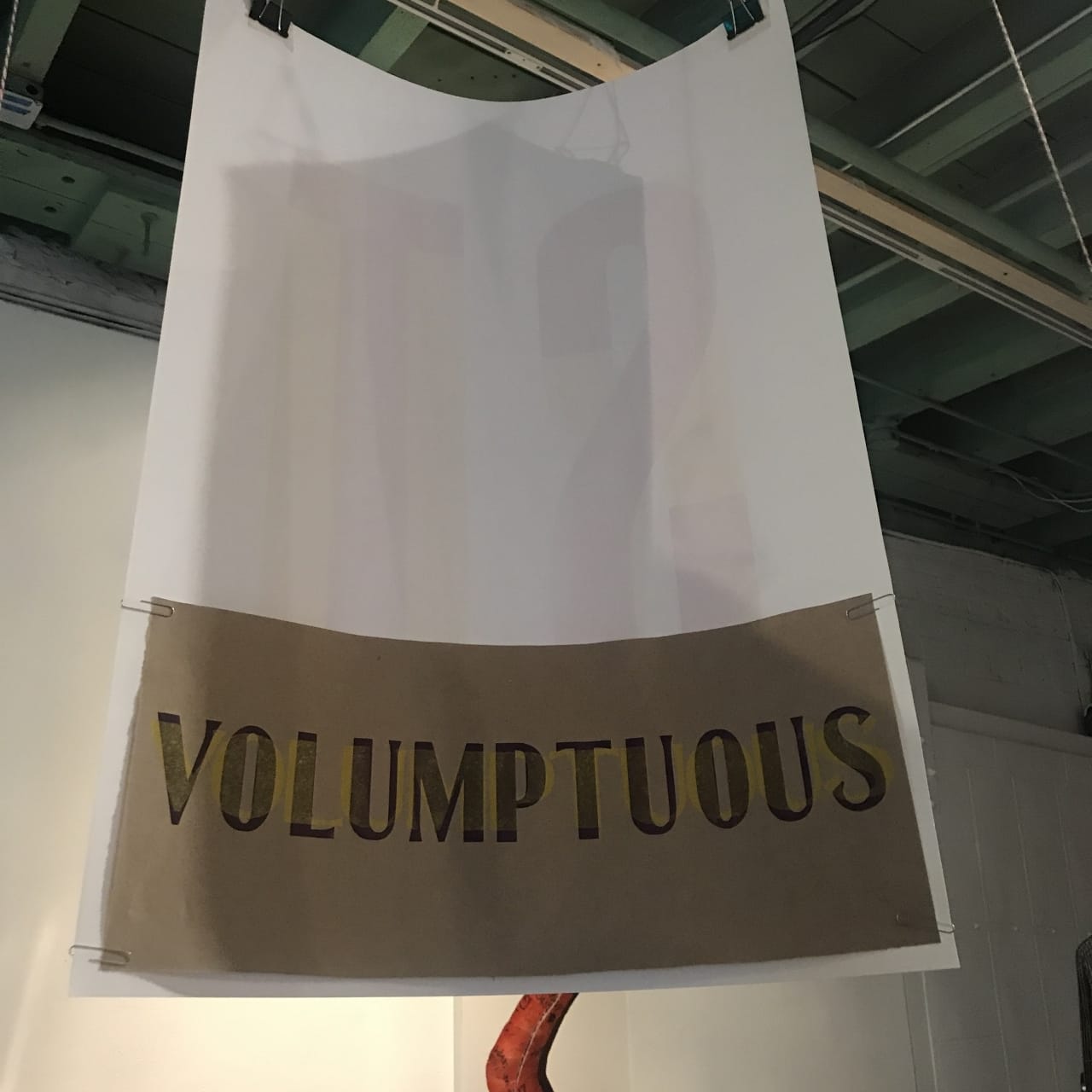 Are you ready for volumptuous? This hilarious sign by Purgatory Pie Press dangling from Flux Factory’s ceiling, part of “Volumptuous: Hanging Tower of Babble,” a large installation of hanging signage, is a fitting mascot for this playful summer show. Tongue Tide, curated by Christina Freeman and Emireth Herrera, invites us all to play a little more with language, and to ponder other languages besides English. It’s a must-see for writers and wordsmiths and is well worth the trip to Long Island City.