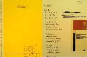 CHICAGO — The Center for Book and Paper Arts in Chicago is currently showing a fascinating series of collaborations between visual artists and writers such as Robert Creeley, Philip Guston, Larry Rivers, Karen Randall and Jim Dine. Poems and Pictures: A Renaissance in the Art of the Book (1946-1981) is a useful and concrete example of the most basic form of interdisciplinary art — combining words and images produced by the highest practitioners of those forms, to observe “the extraordinary occasions when these things and activities fuse, introducing a third element,” as the well-written curator’s essay puts it.